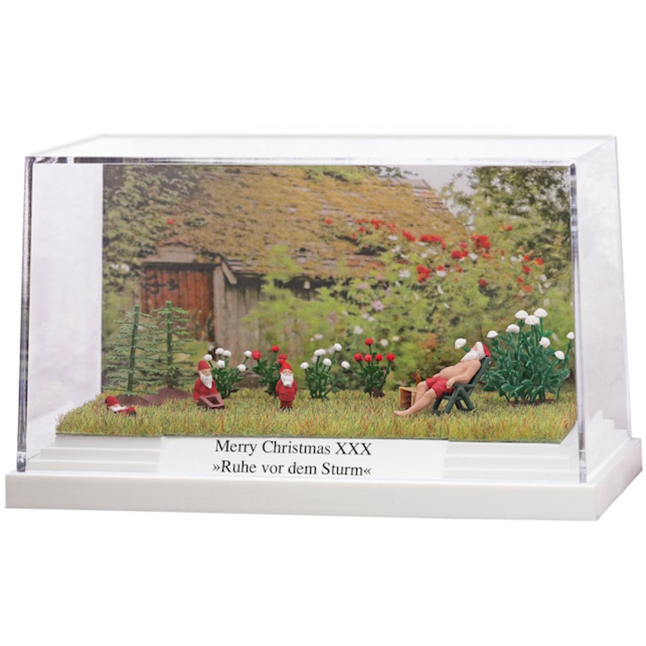 Diorama Merry Christmas XXX - Ruhe vor dem Sturm. Der Weihnachtsmann gönnt sich gerade eine Auszeit im Garten und züchtet auch Cannabisfplanzen