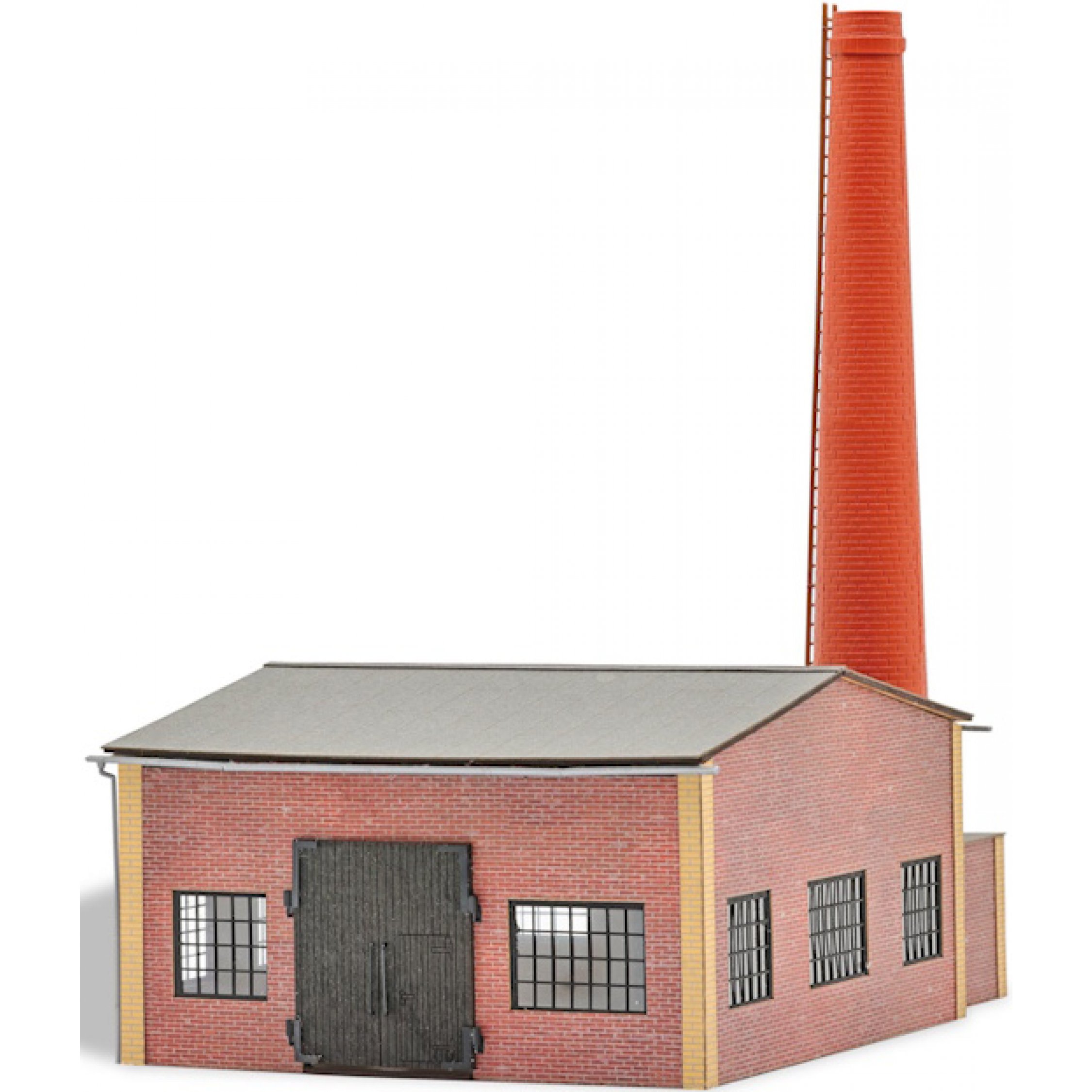 Heizhaus mit Schornstein, mit Backstein-Fassade, fertig koloriert, Größe 124 x 165 x 201 mm, Bausatz