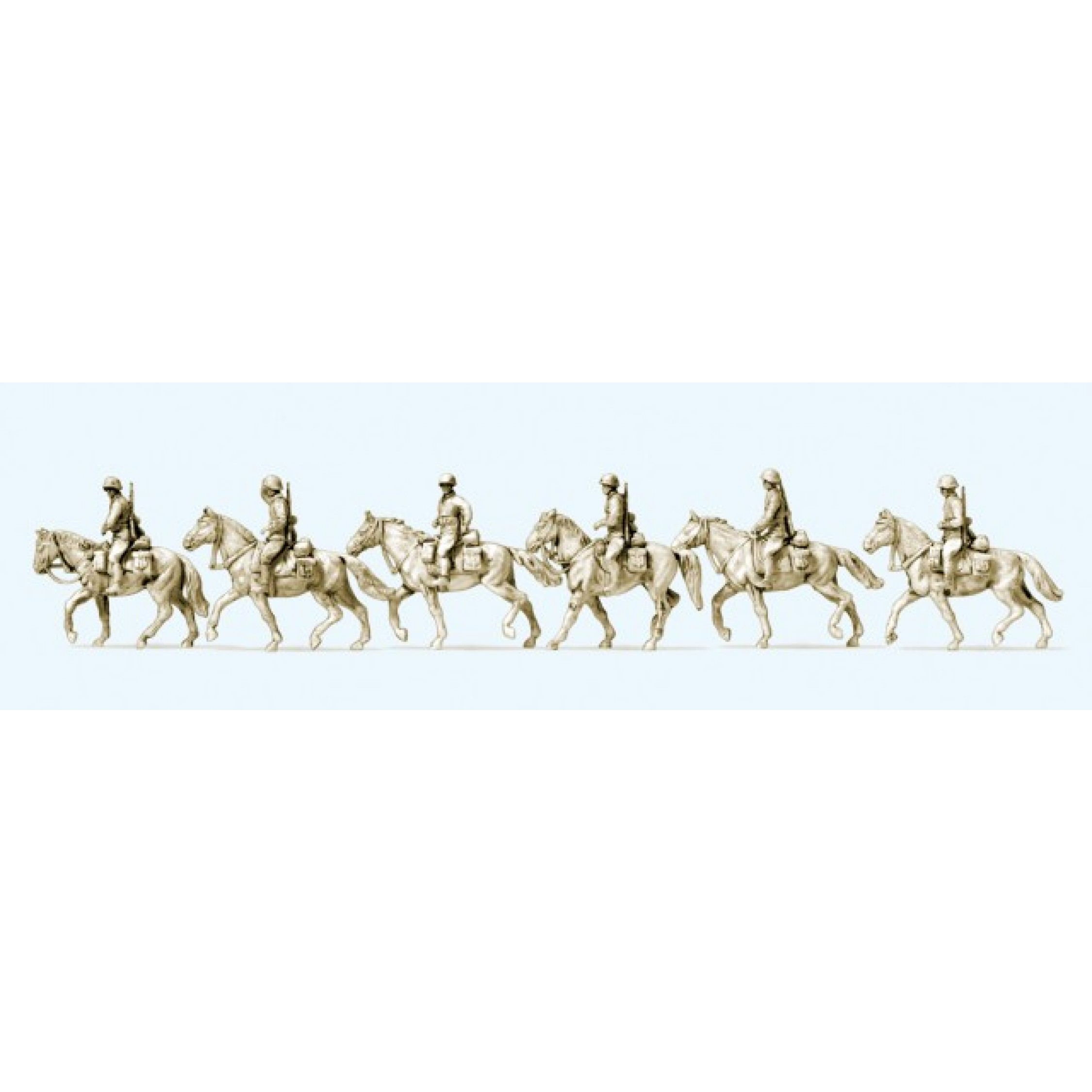 3. Kavallerie, aufgesessen, Deutsches Reich 1942-45, 6 unbemalte Figuren, 6 unbemalte Pferde, Bausatz