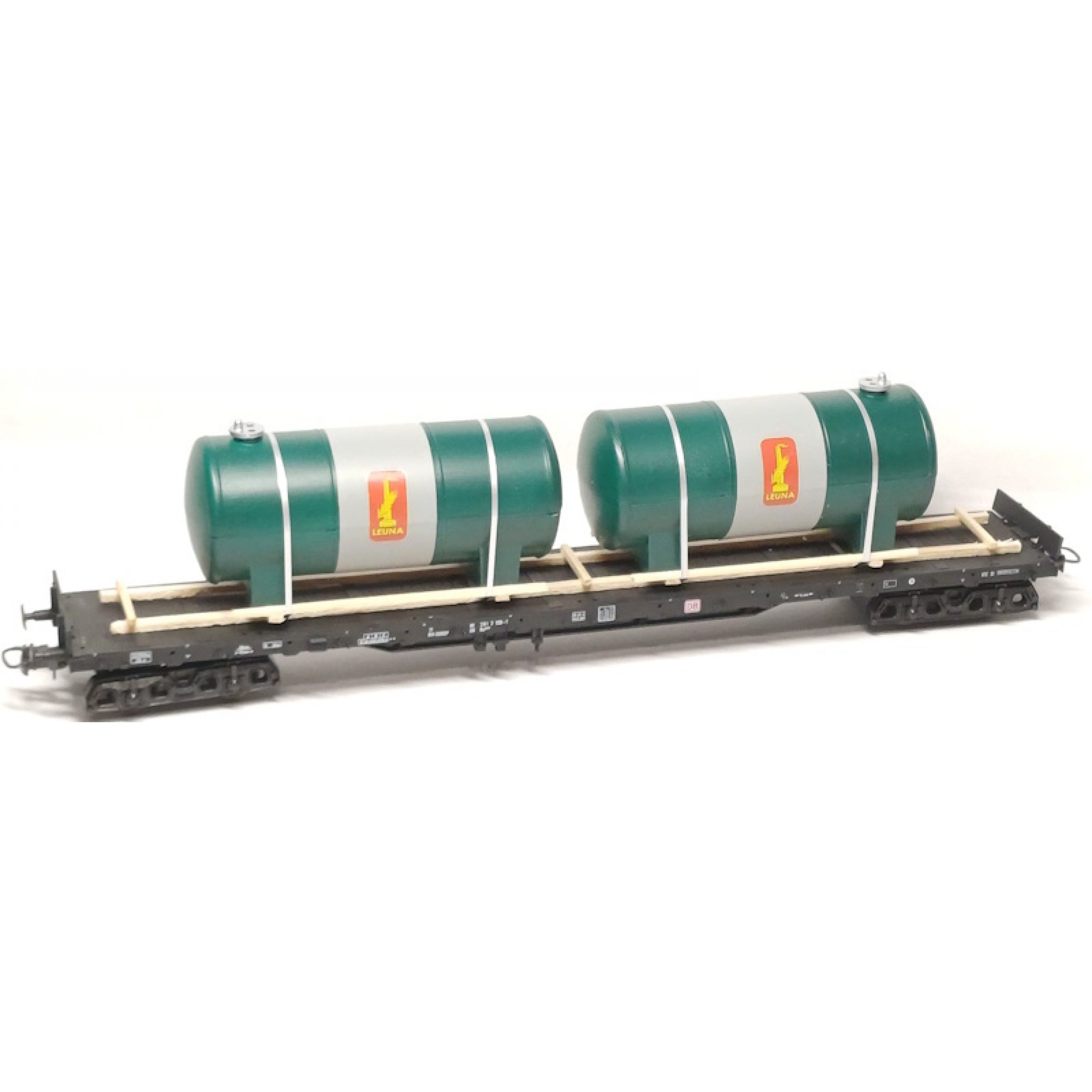 Ladegut große Kessel LEUNA auf Transportgestell gelagert und mit Spannbändern gesichert, Länge ca. 200 mm
