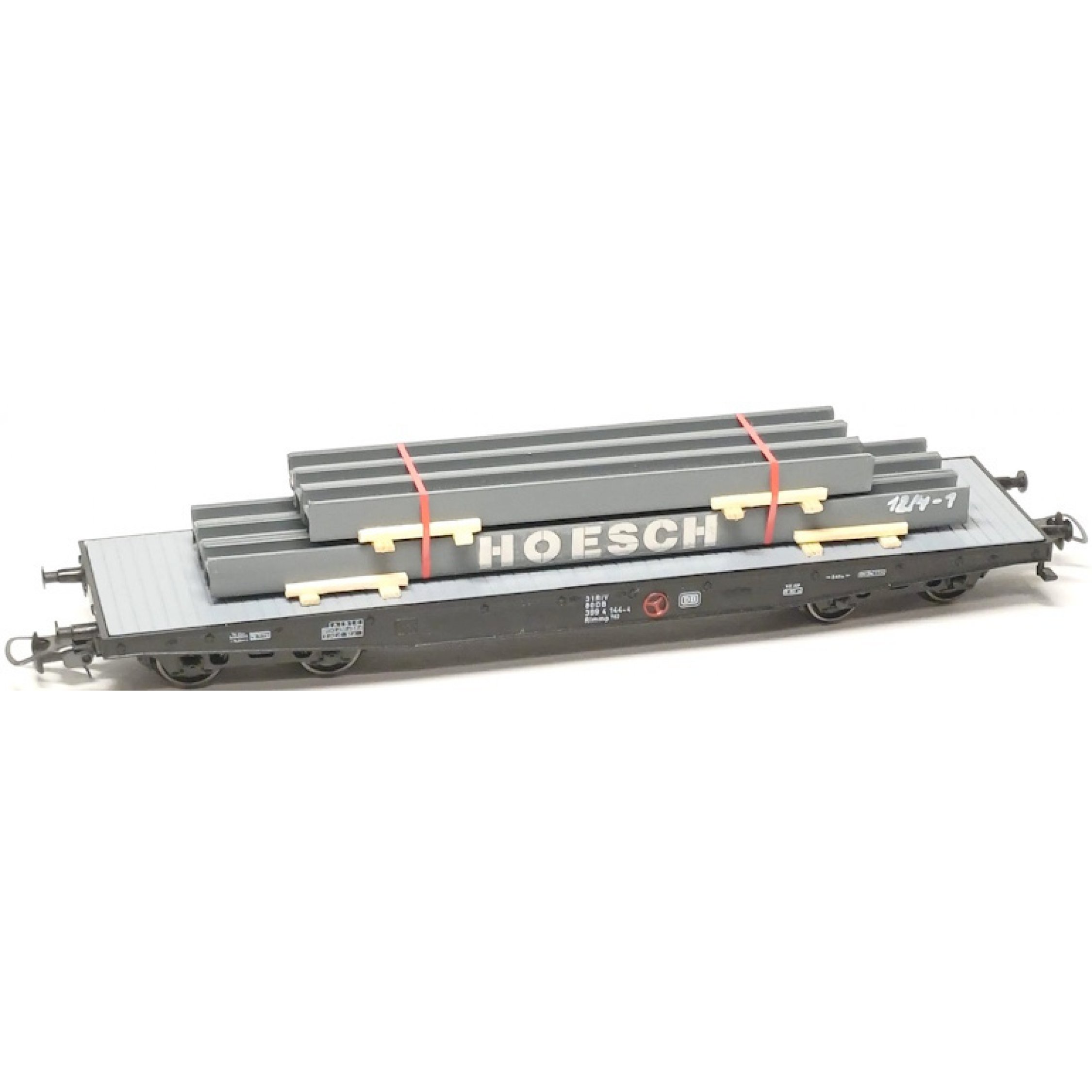 Ladegut H-Profil-Träger HOESCH auf Transportpaletten gelagert und mit Spannbändern gesichert, Länge ca. 130 mm