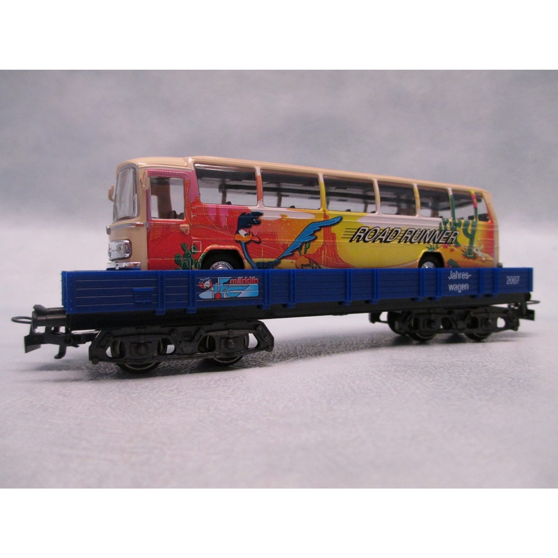 1.FC märklin Jahreswagen 2007 - Road Runner, (4achsiger Niederbordwagen beladen mit Mercedes-Benz Omnibus)