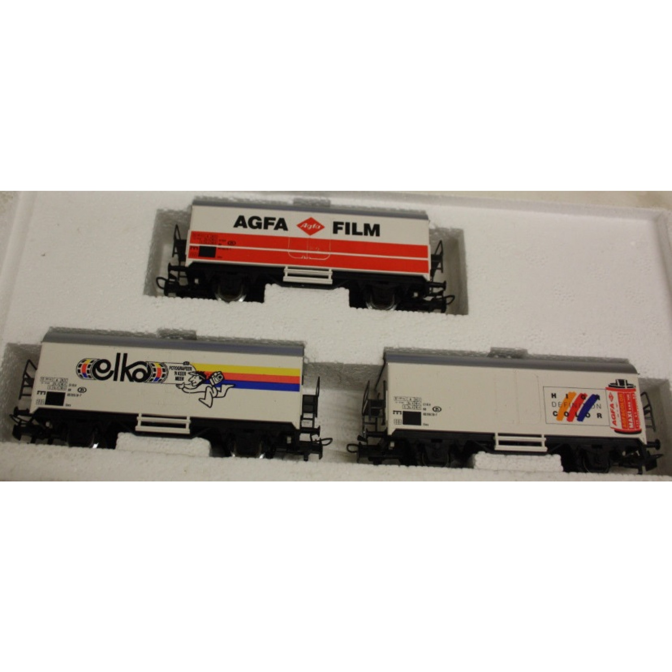 AGFA Fotoset, Inhalt 3 Wagen (4415): 1) elka FOTOGRAFEER NKEER MEER, 2) AGFA FILM, 3) HIGH DEFINITION COLOR - AGFACOLOR