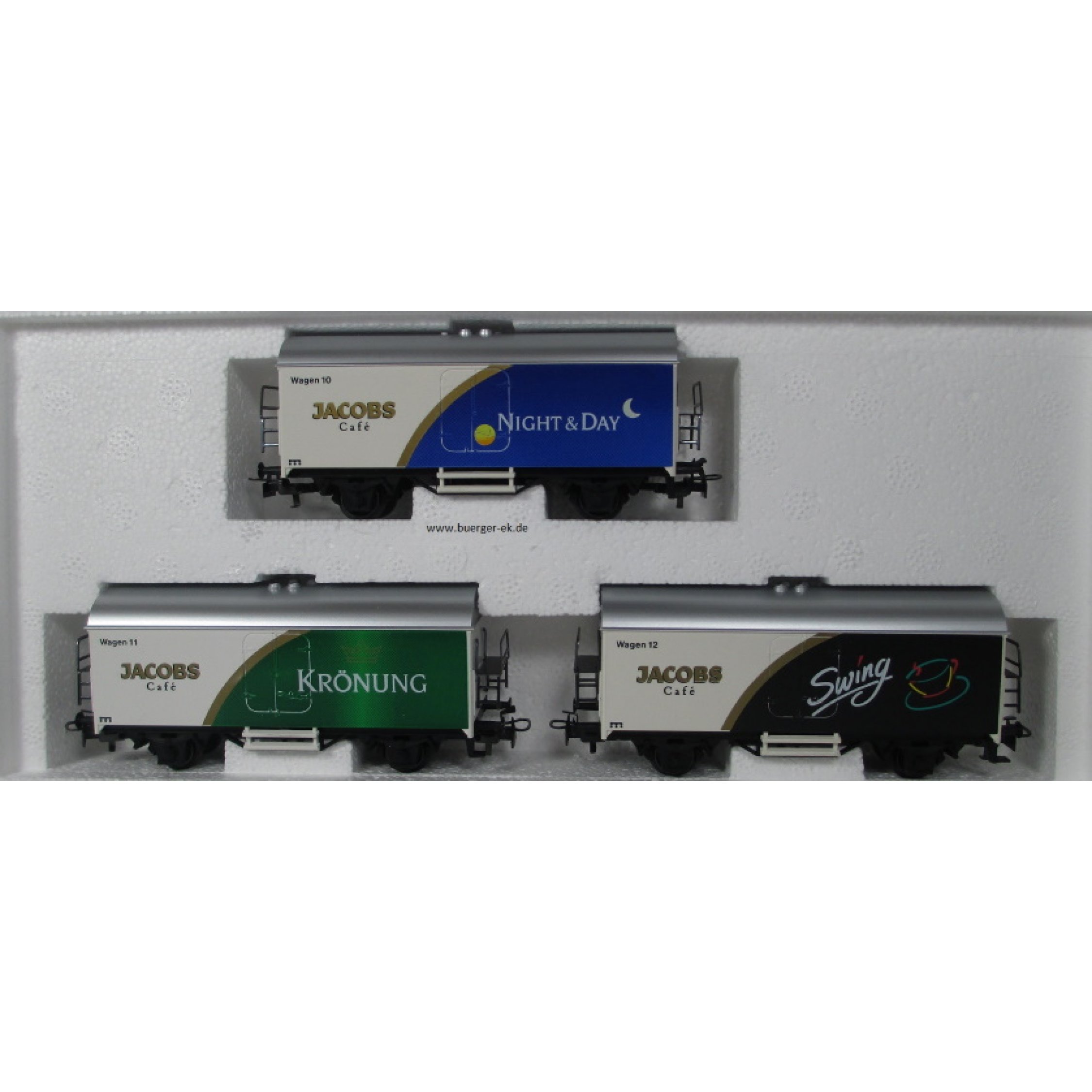 Cafe Line Die Jacobs Cafe Wagen Sonderdruck, Inhalt 3 Wagen (4415): 1) JACOBS NIGHT & DAY Wagen 10, 2) JACOBS CAFE KRÖNUNG Wagen 11, 3) JACOBS CAFE Swing Wagen 12,