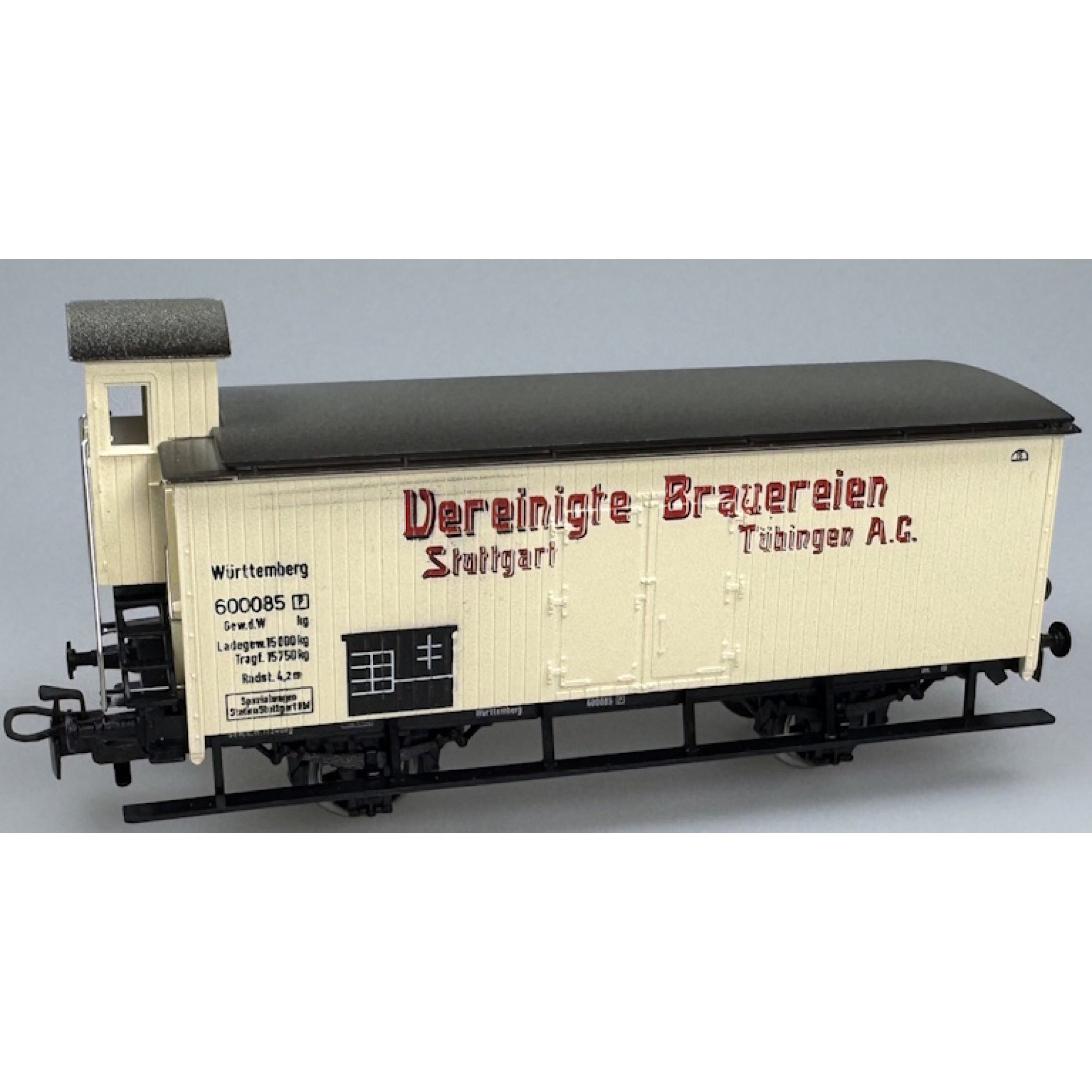 3. Gedeckter Güterwagen Vereinigte Brauereien aus Württemberger Zug 2857, JEDOCH UNGEALTERT !!!, mit Bremserhaus, 2achsig, (ohne Originalkarton)