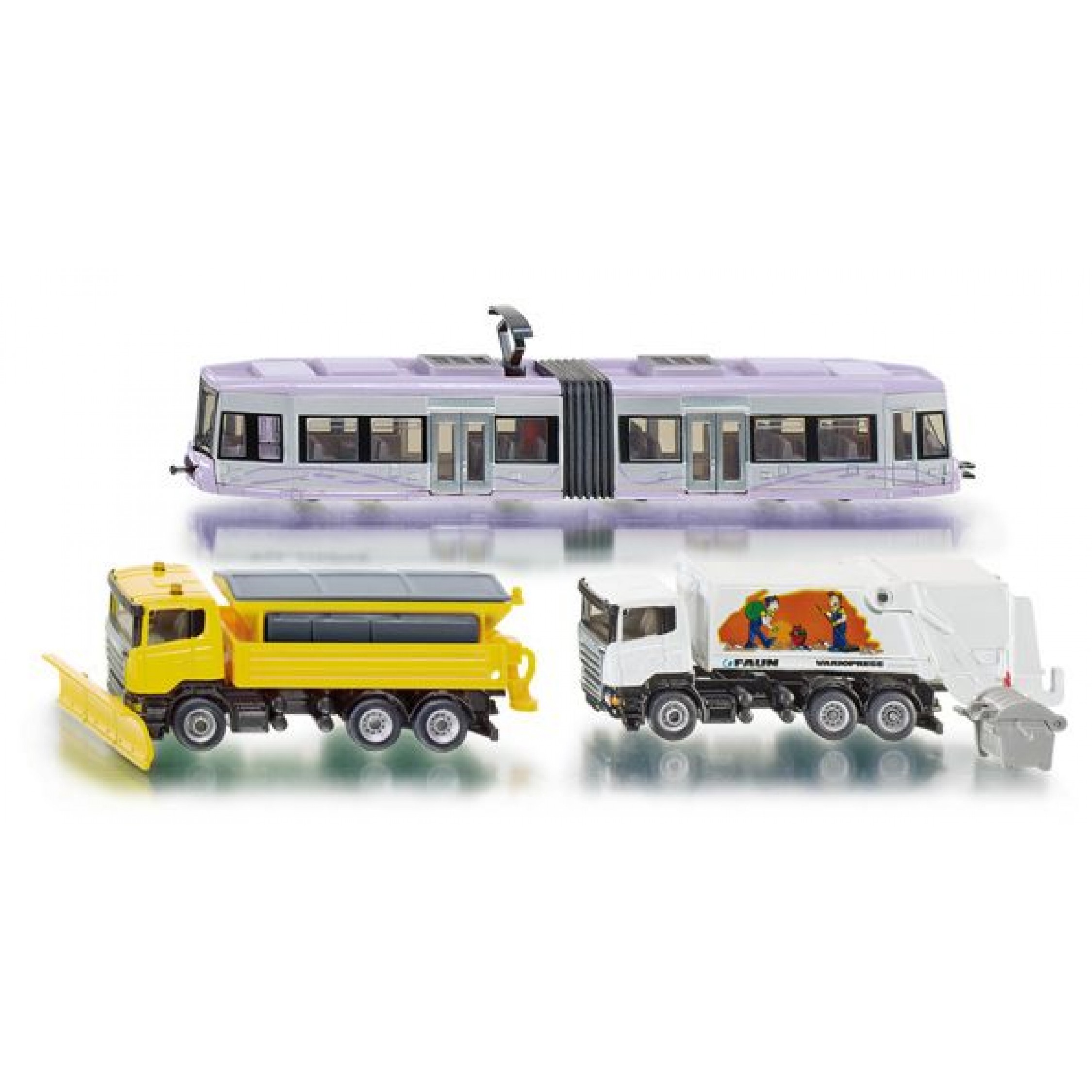 Kommunal Set, Inhalt: Straßenbahn, LKW mit Schneepflug und Streuaufsatz, Müllwagen