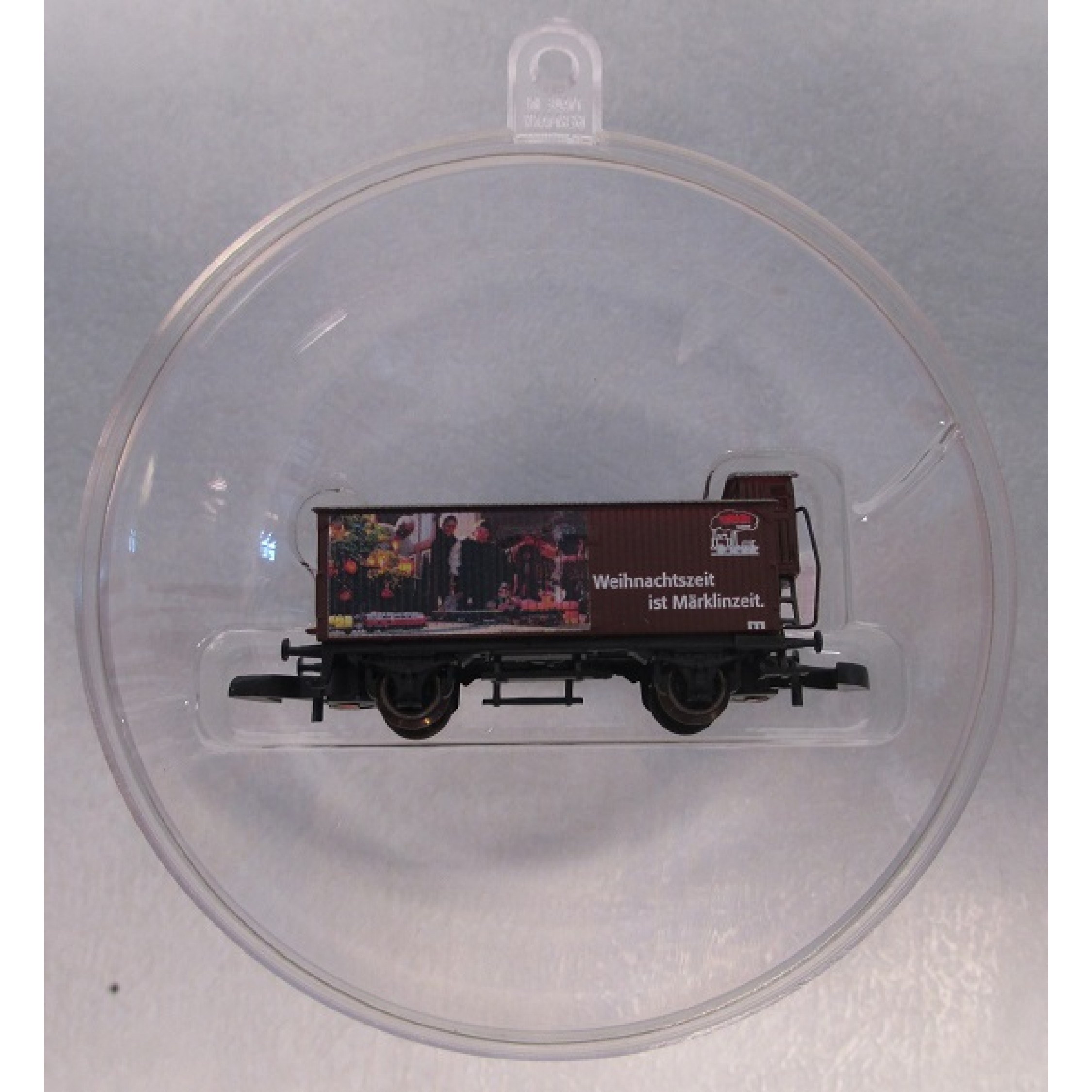 märklin museum - Weihnachtszeit ist Märklinzeit, Gedeckter Güterwagen mit Bremserhaus, in durchsichtiger Glaskugel,