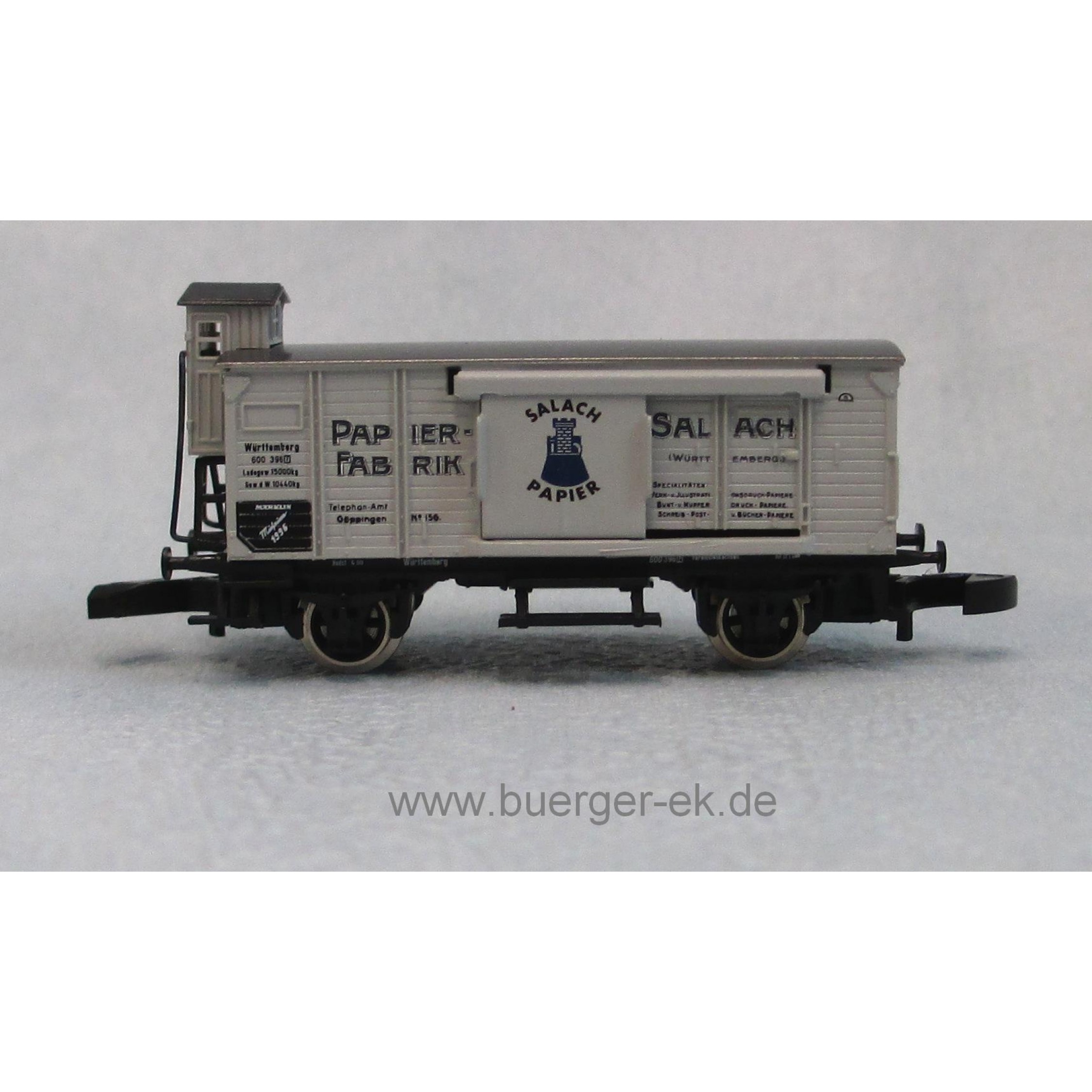 3. Märklin Museumswagen 1996 Papierfabrik Salach, Museum 1996 (Altbaugüterwagen mit Bremserhaus und Schiebetüren)