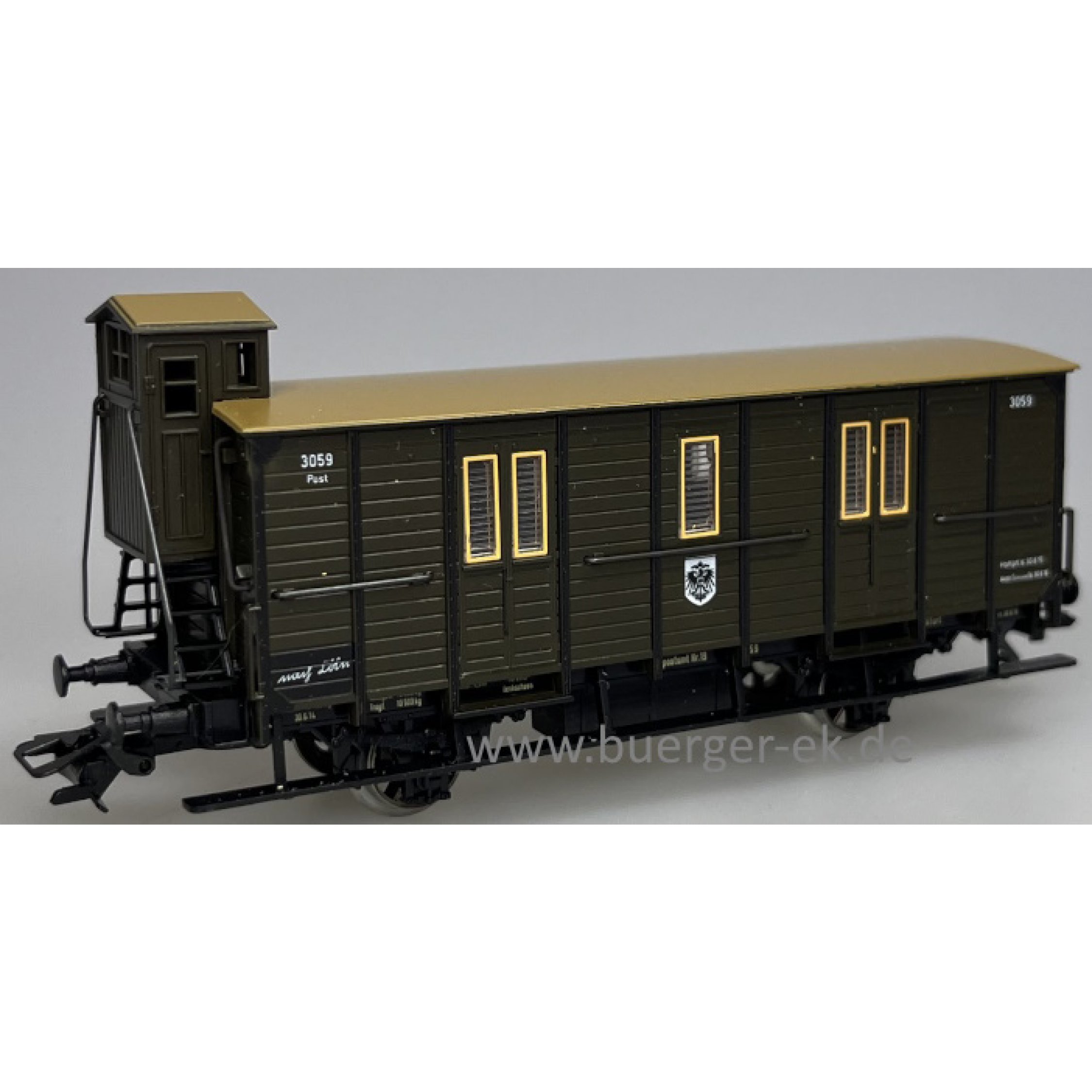 Post 500 Jahre (Gedeckter Güterwagen mit Bremserhaus, dunkelgrün), 3059 Post, mit Wappen
