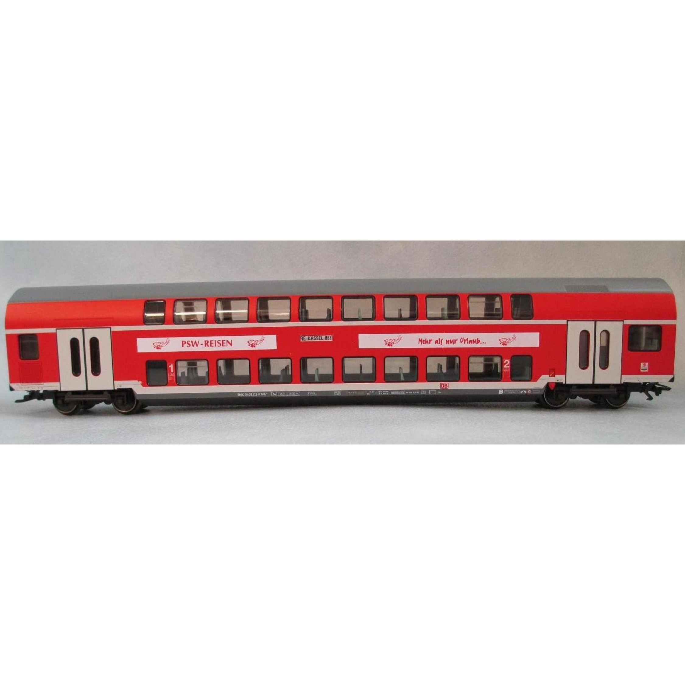 PSW-Reisen Mehr als nur Urlaub? (Doppelstockwagen 1./2.Klasse, rot/grau), mit Werbebedruckung, Polizeisozialwerk