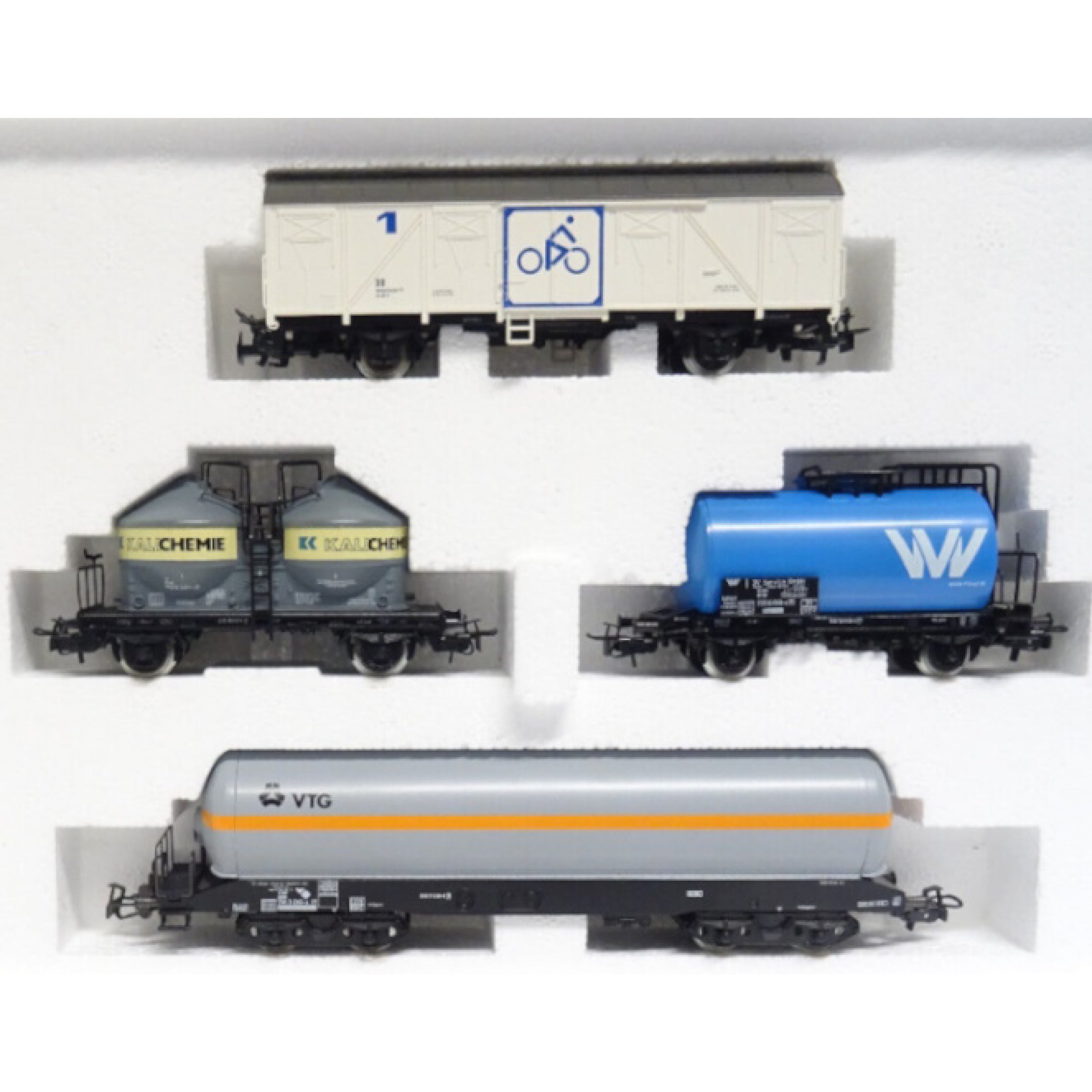Regional-Wagen-Set Nord, 1 Fahrradwagen Sylt, 1 Silowagen Kali Chemie, 1 Kesselwagen VVV, 1 Gas-Kesselwagen VTG