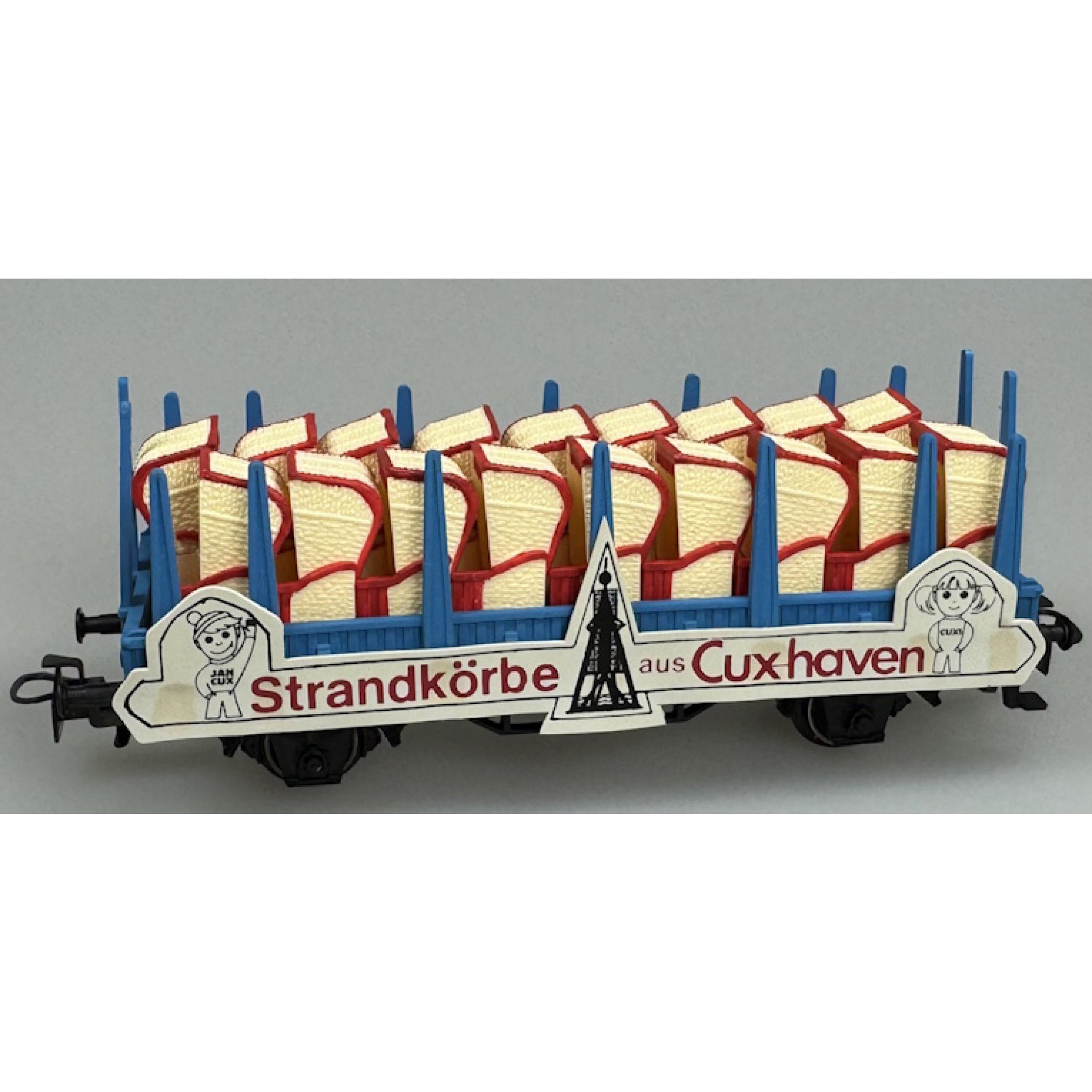 3. Rungenwagen Strandkörbe aus Cuxhaven - Jan Cux Cuxi, beladen mit 18 rot/hellbeigen Strandkörben