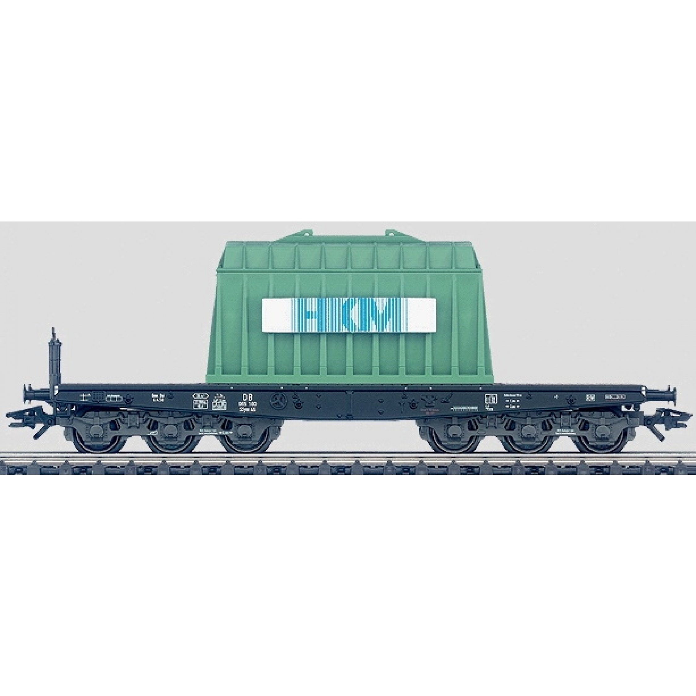 3. Schwerlastwagen Ssym der Deutschen Bundesbahn - DB, 6-achsig, beladen mit Thermohaube zum Transport von glühenden Stahlbrammen, Wagen-Nr.: DB 966 089