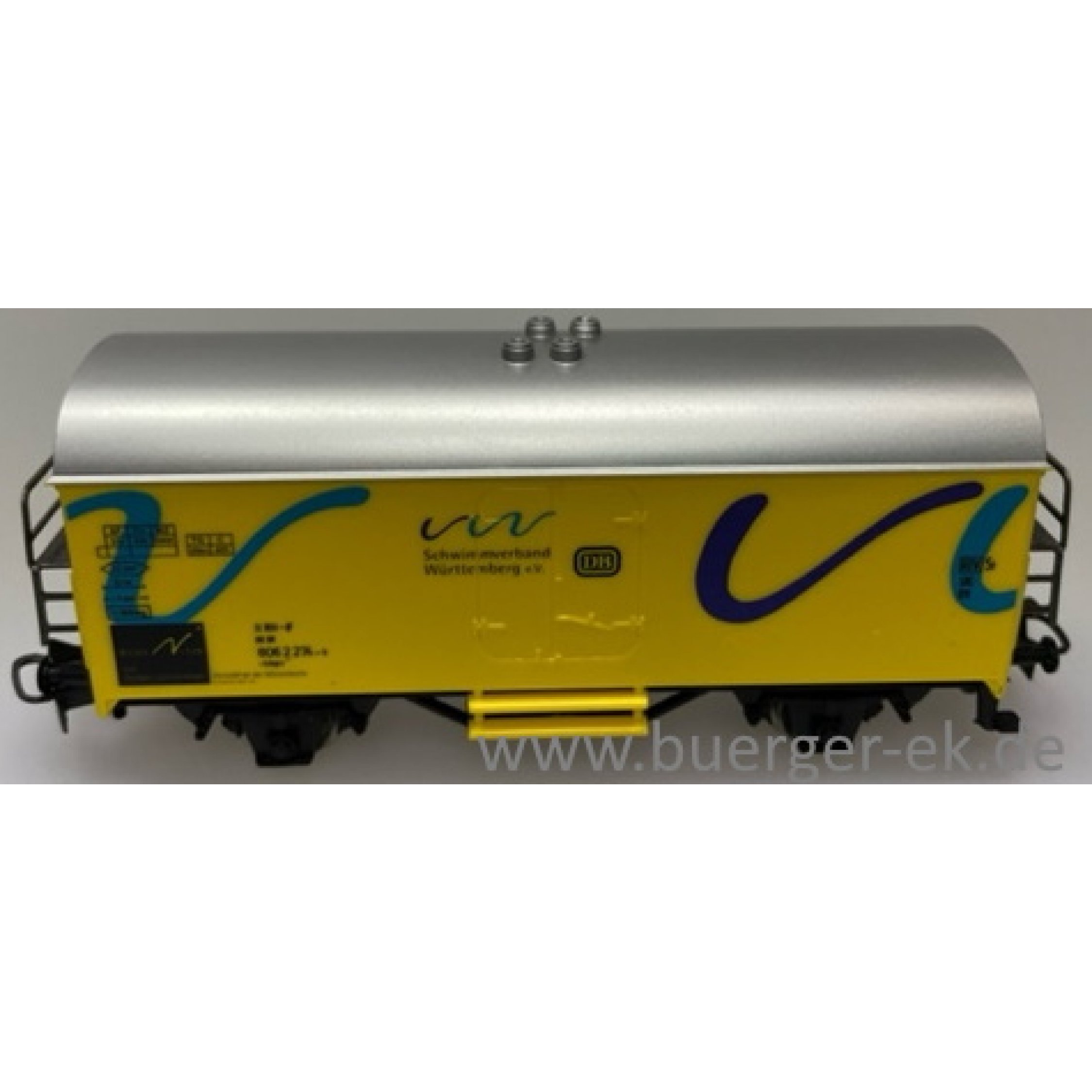 3. Schwimmverband Württemberg e.V. www.svw-online.com mit blau/lila Streifendesign - Vorsicht an der Beckenkante, Wagen gelb