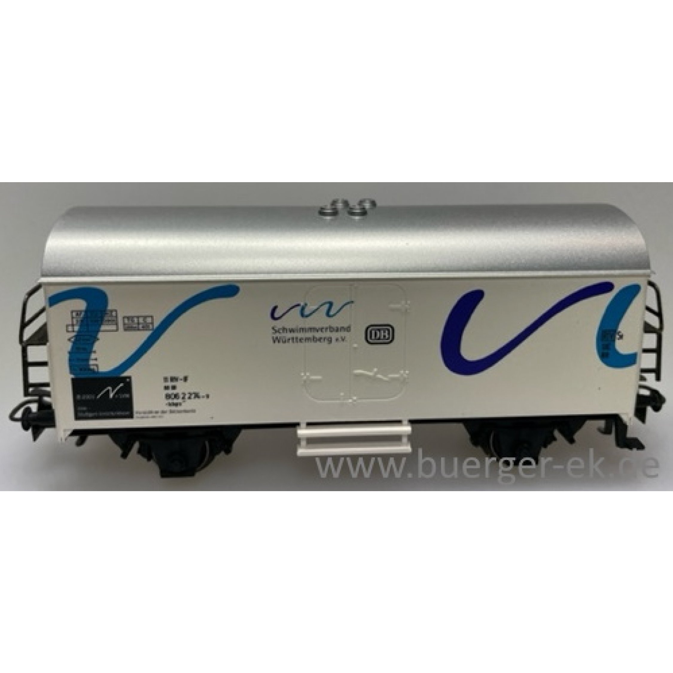 3. Schwimmverband Württemberg e.V. www.svw-online.com mit blau/lila Streifendesign - Vorsicht an der Beckenkante, Wagen weiß