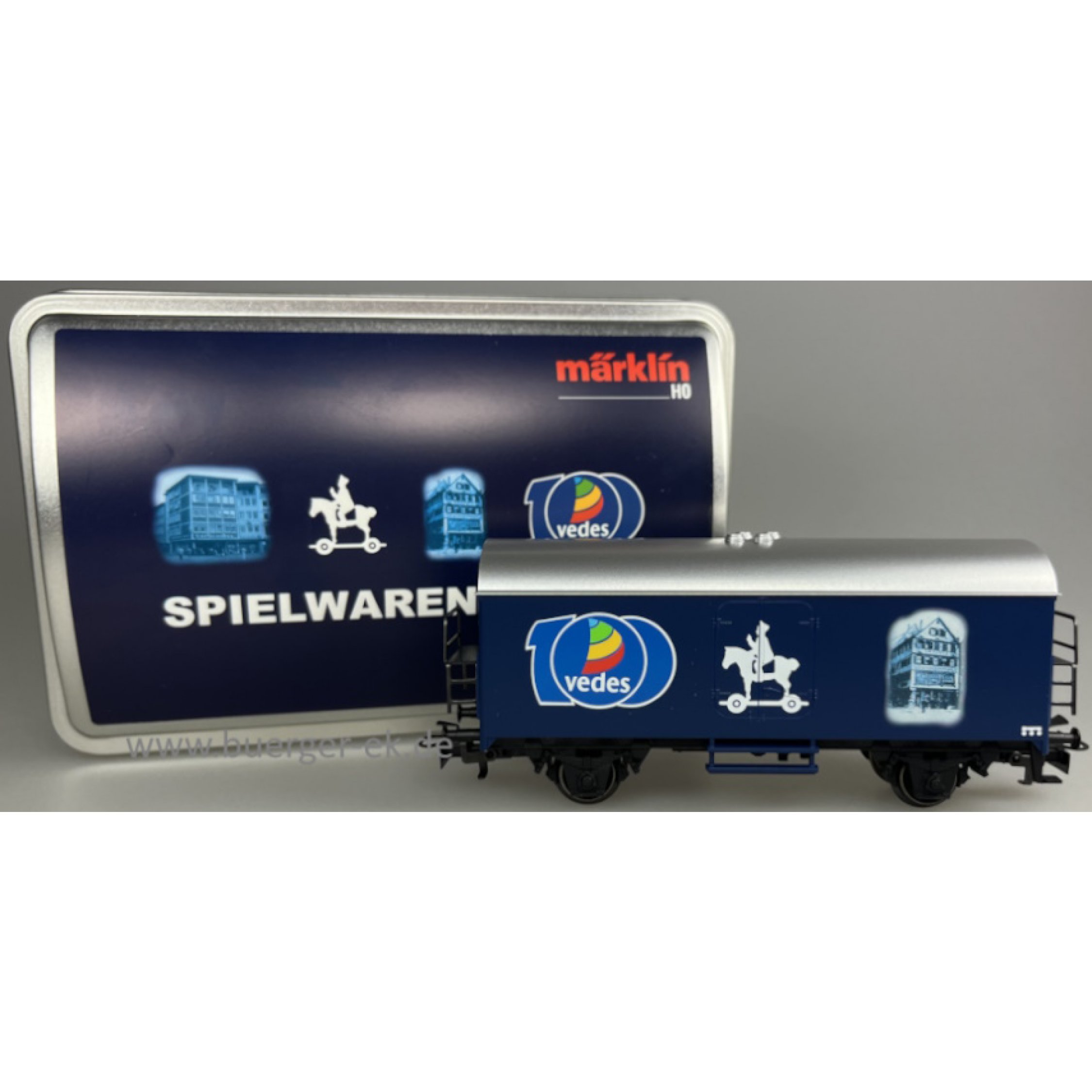 Spielwagen Kurtz 100, wechselseitge Bedruckung: alte bzw. neue Gebäudeanschrift von Spielwaren Kurtz in Stuttgart, in Blechschatulle !!