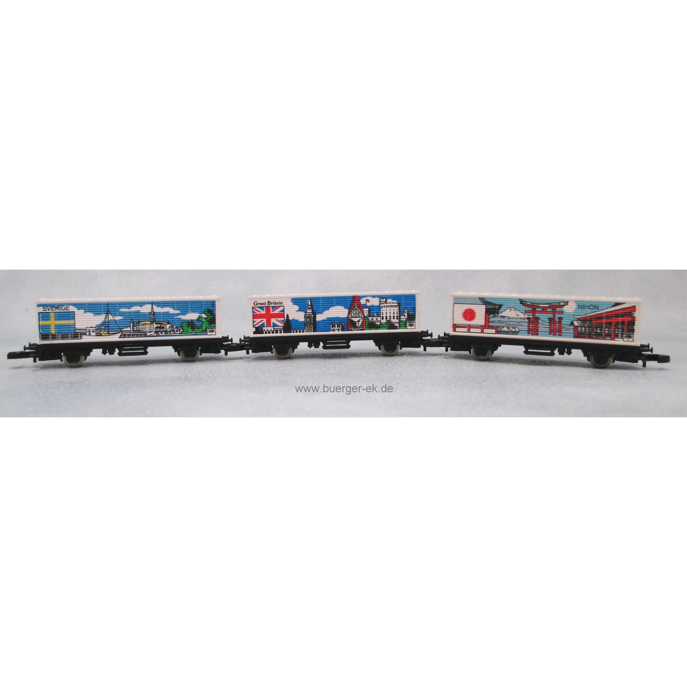 U.S.A.-Flaggenserie 1987, 3 Containerwagen: Schweden / Grossbritanien / Japan