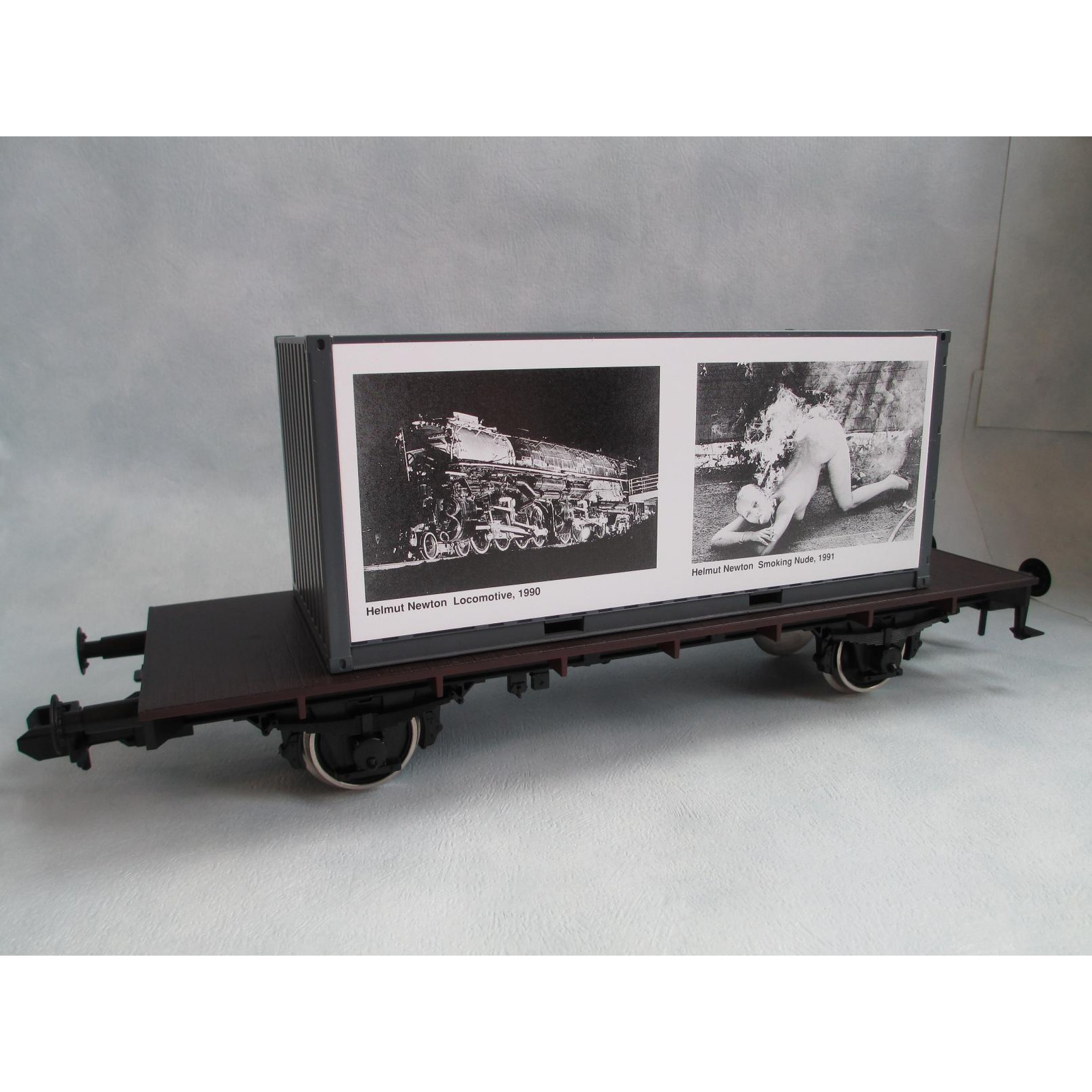 Züge Züge Die Eisenbahn in der zeitgenössischen Kunst (Containerwagen 2achsig), Erstausführung mit Aktgemälde von Helmut Newton, Smoking Nude,