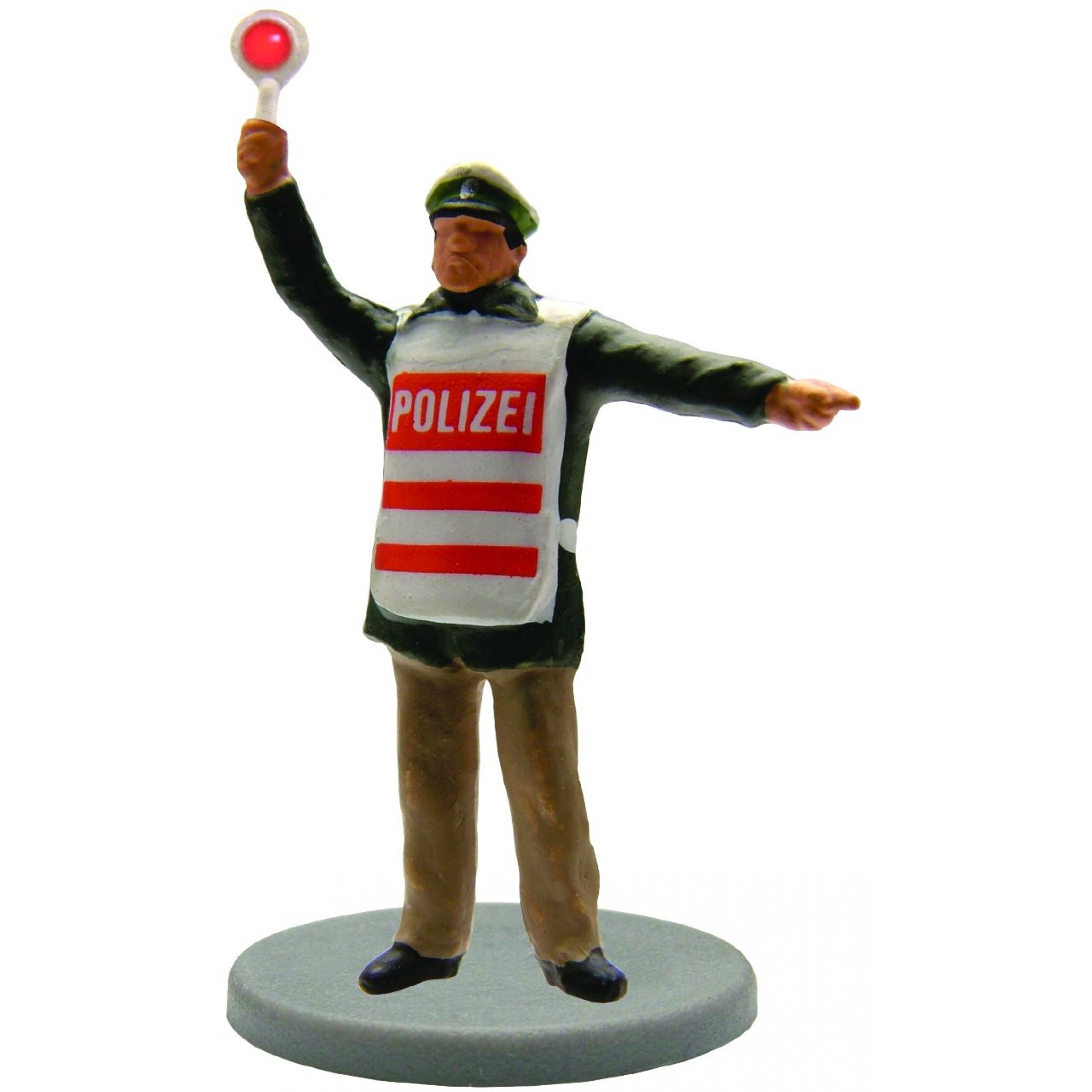 POLIZIST mit erhobener Leuchthaltekelle, Polizeibeamter mit rot beleuchteter Kelle, 14-16 V