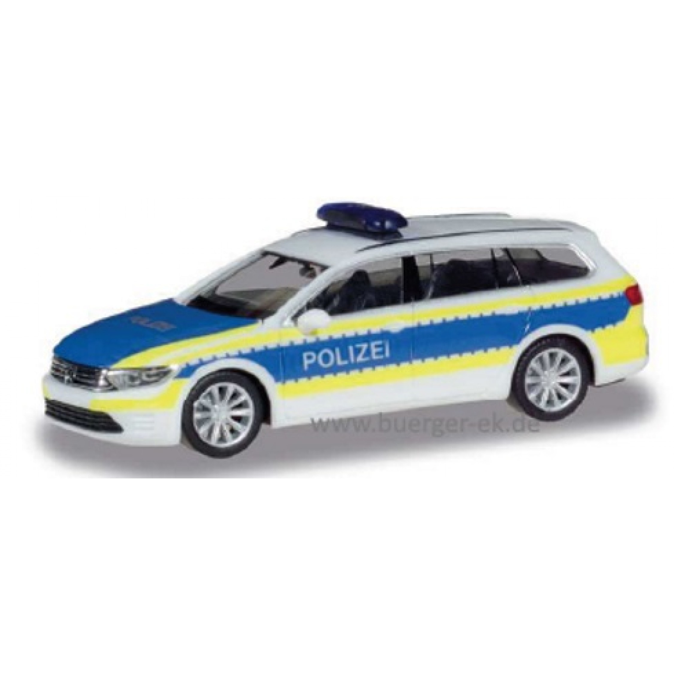 3. VW Passat Variant GTE, Polizei Hannover, weiß/blau mit leuchtgelbem Streifendekor