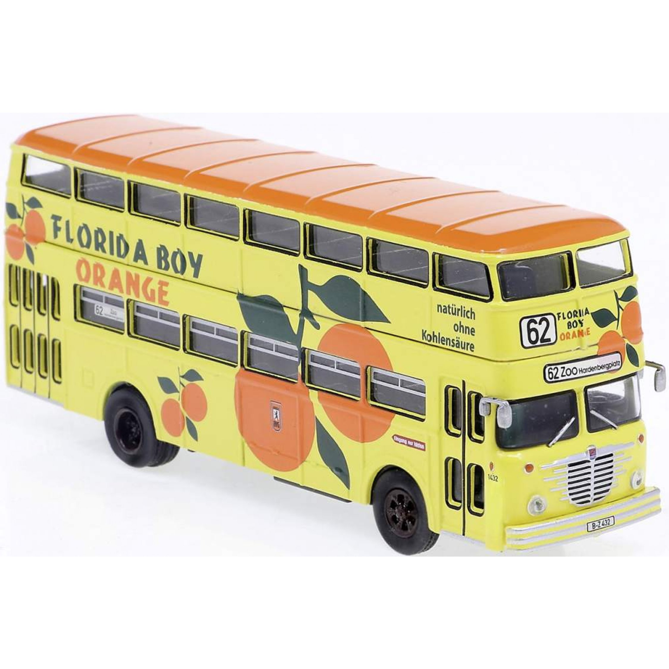Büssing D2U der BVG - Doppeldecker Berliner Verkehrsbetriebe - mit Werbung: FLORIDA BOY ORANGE, Baujahr 1960