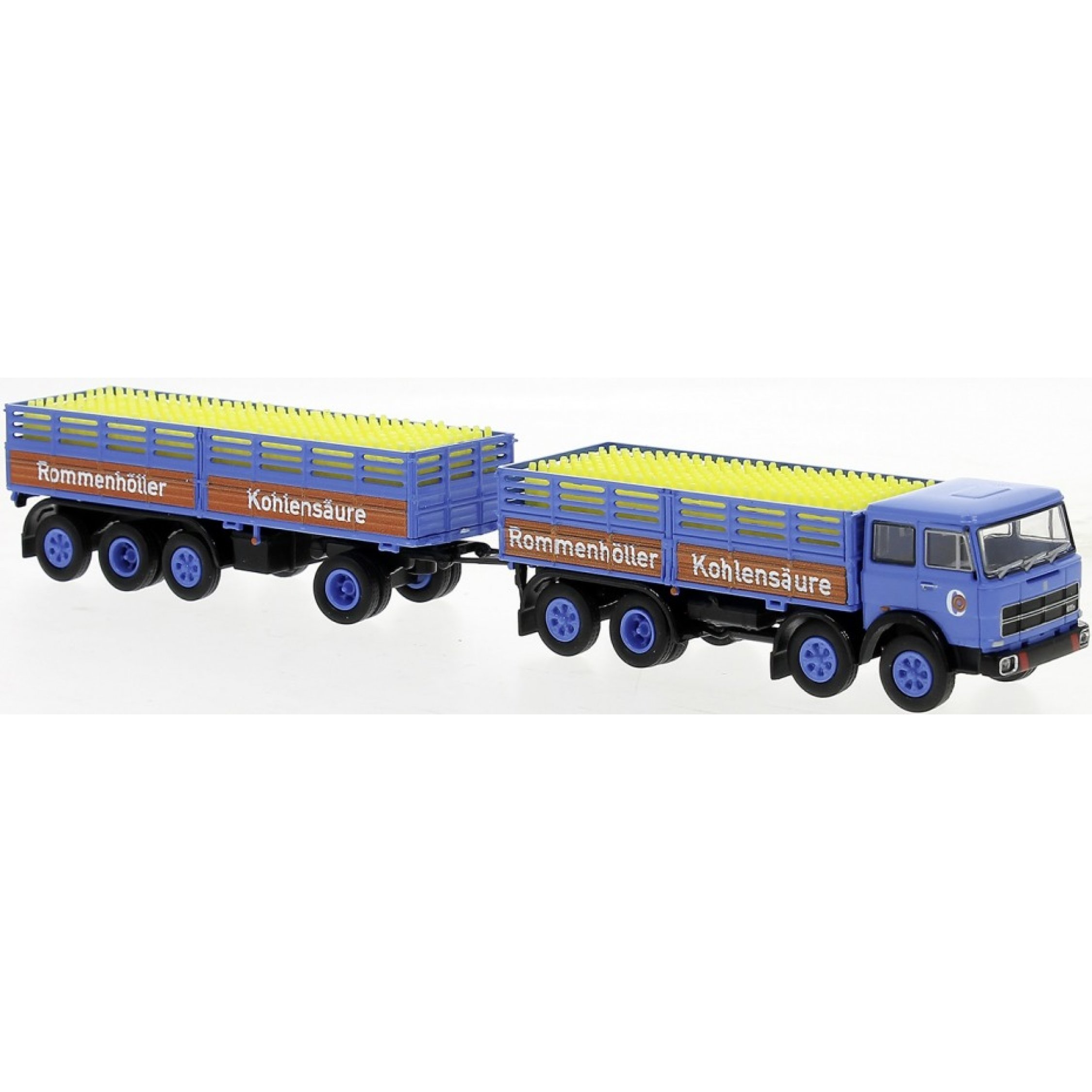 4. Fiat 691 Pritschenhängerzug, mit Ladegut, Rommenhöller Kohlensäure, Baujahr 1970
