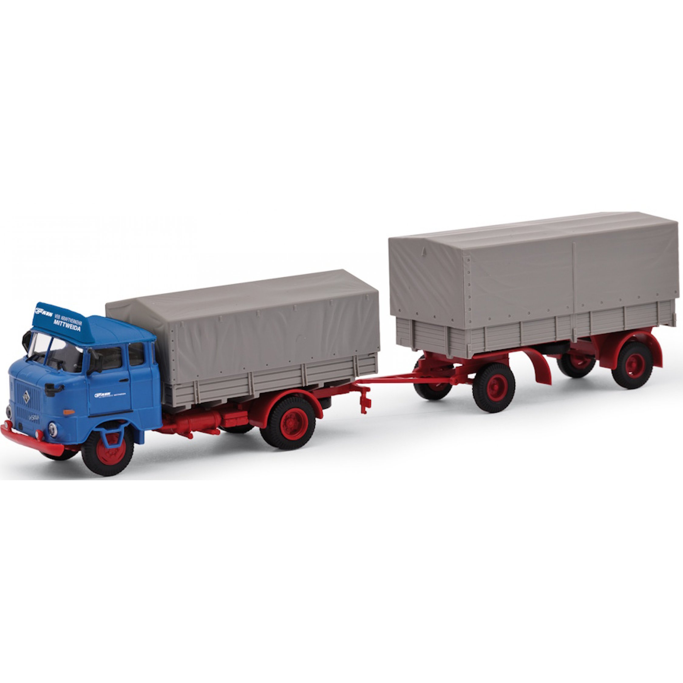 IFA W50 L FP mit HL 80 Anhänger, Pritschen-Planenhängerzug, KVK Mittelweida, Baujahr 1985