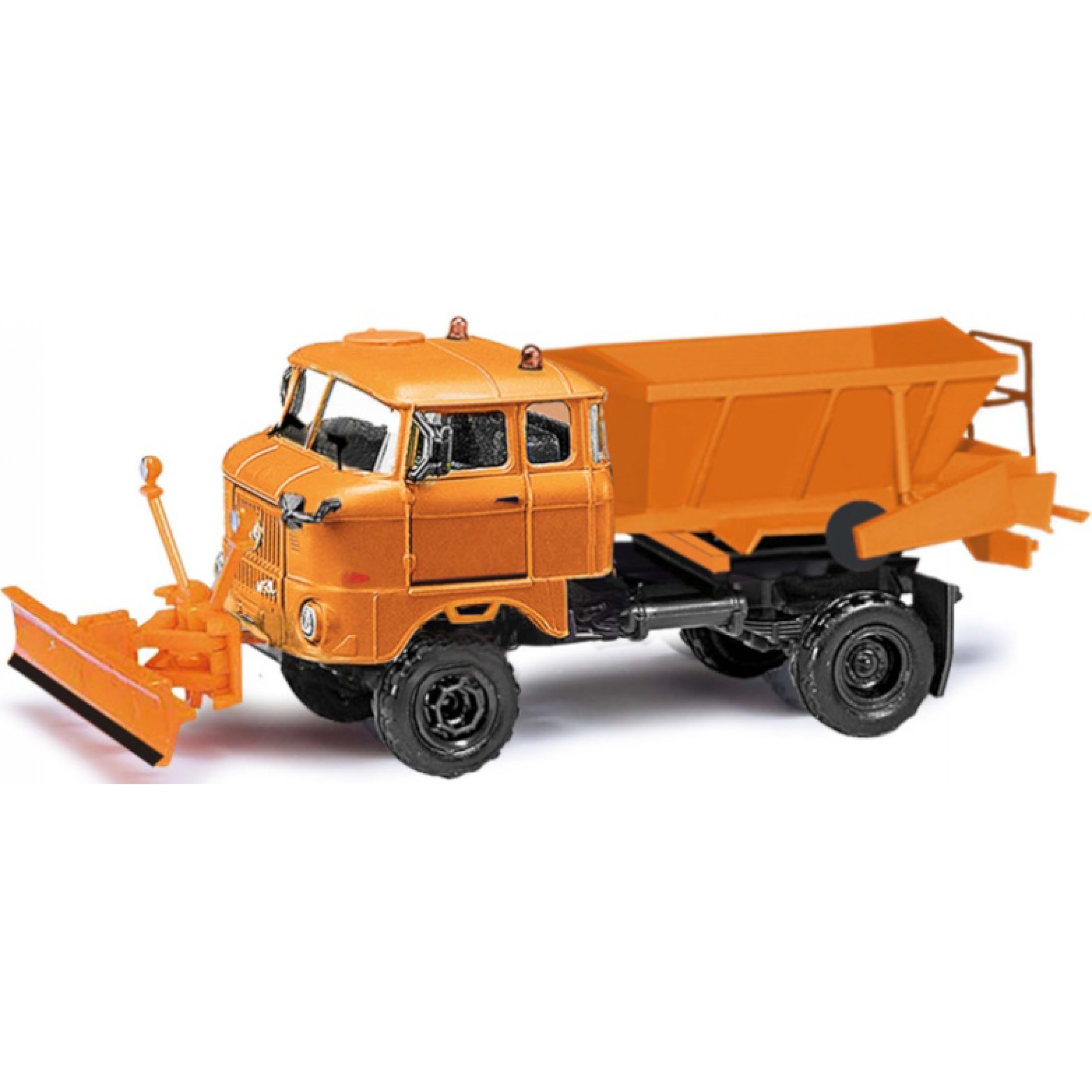 IFA W50 LA/D 035, Winterdienst mit Räumschild und Streuer D 035, orange, Baujahr 1969