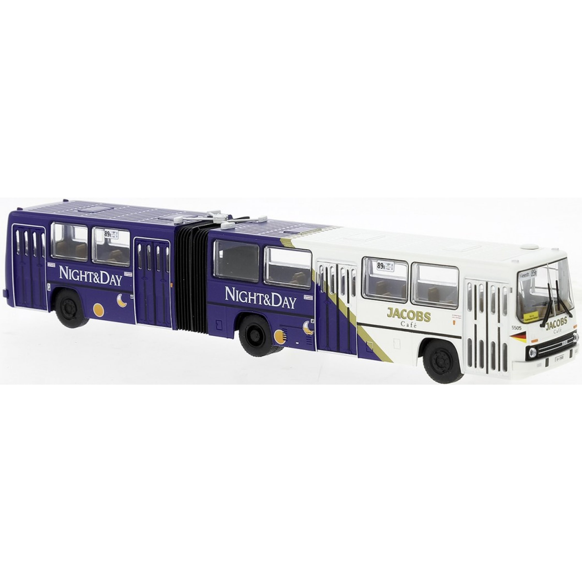 Ikarus 280 der BVG - Berliner Verkehrsbetriebe mit Jacobs NIGHT & DAY Werbung, Baujahr 1991
