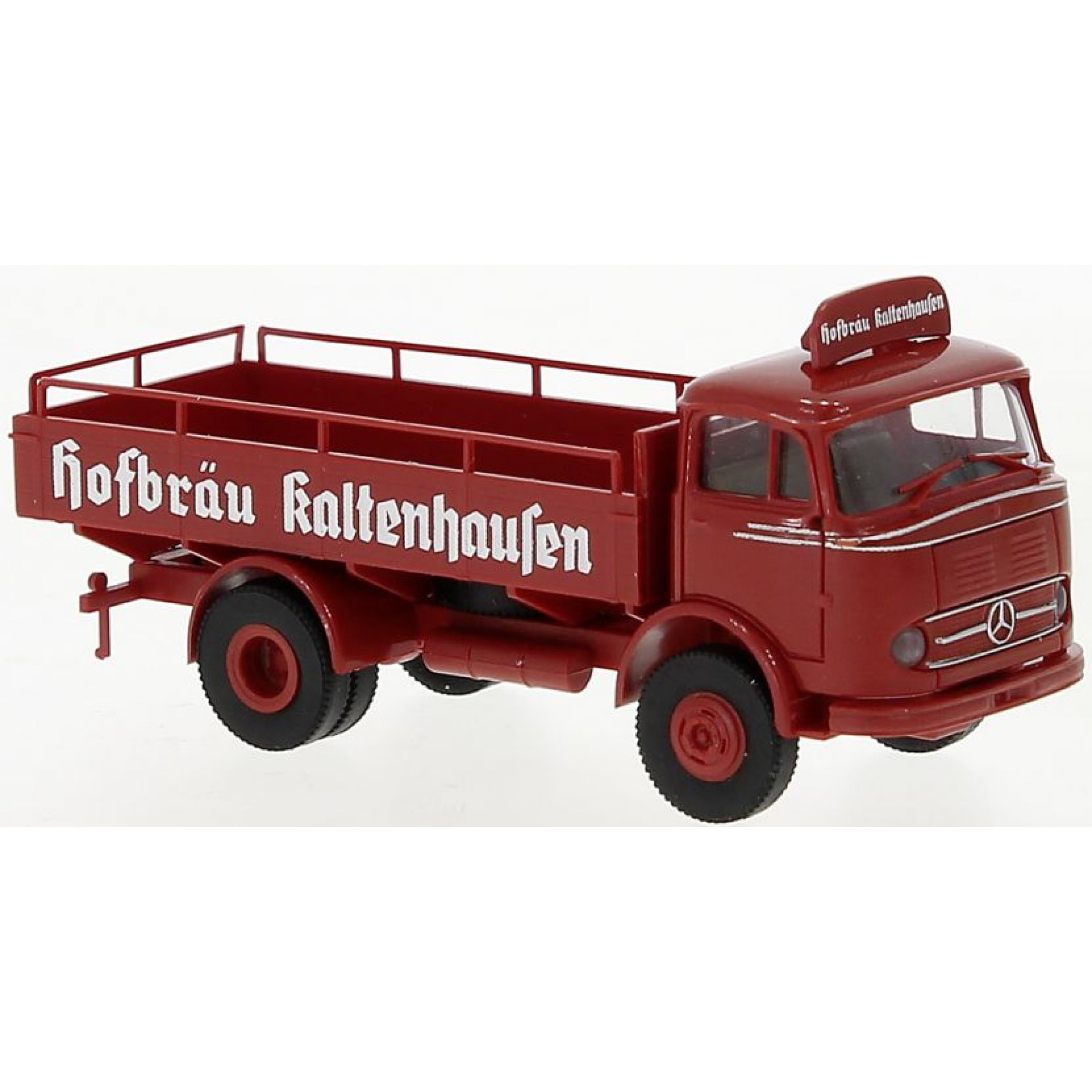 4. Mercedes-Benz LP 328 (A), Pritschen-LKW, Hofbräu Kaltenhausen mit Dachschild, rot, Baujahr 1960