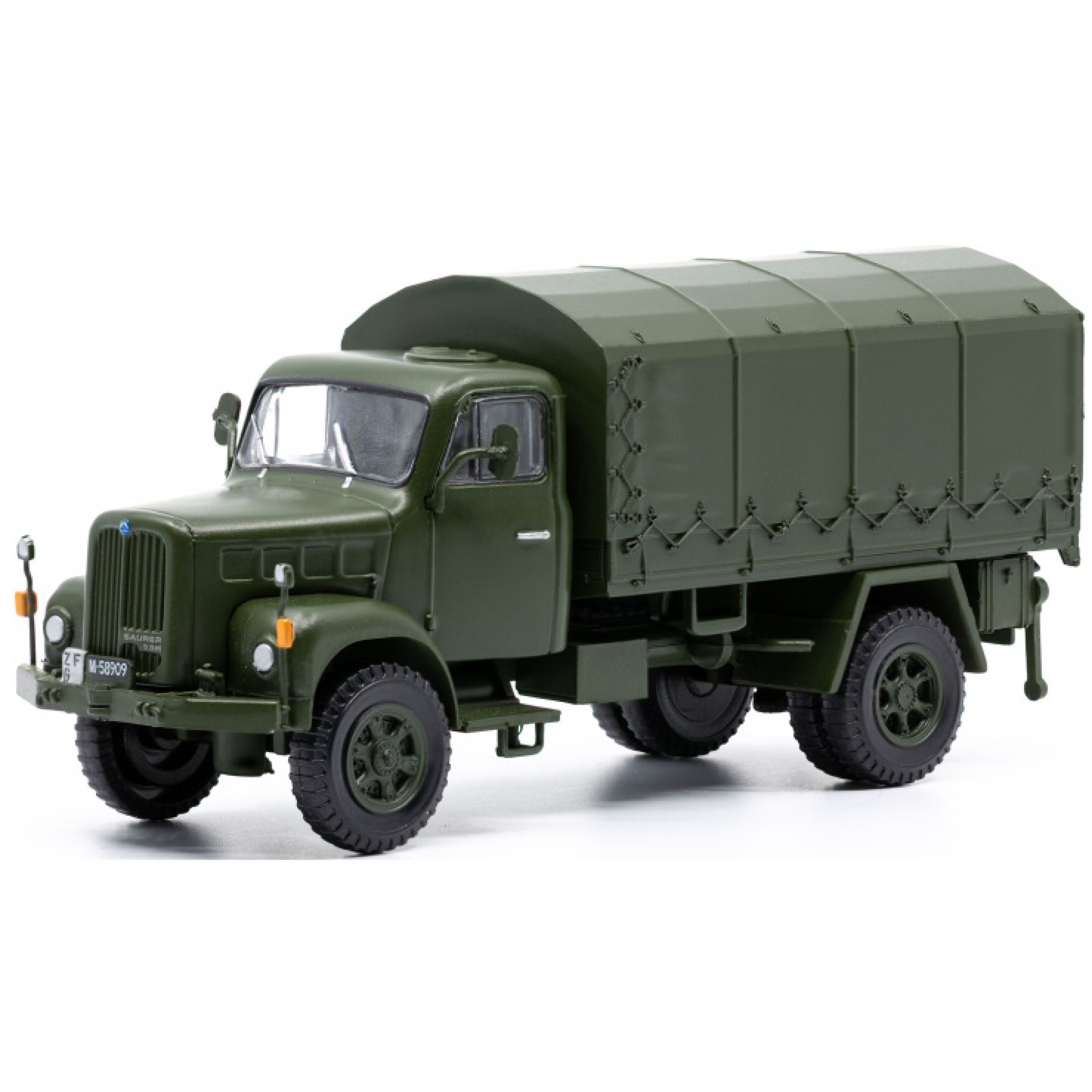 Saurer 2DM Militär-LKW Pritsche/Plane, Plane hinten/seitlich offen, Schweiz, oliv