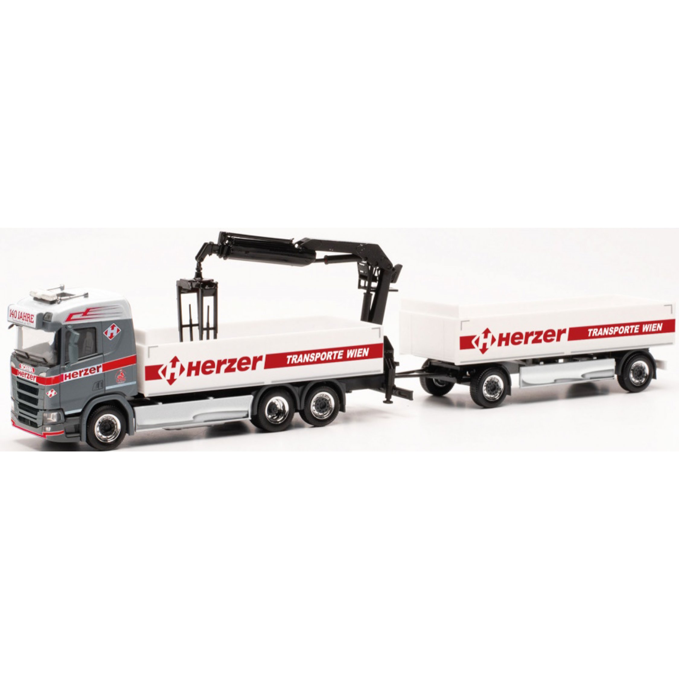 Scania CR 20 Niedrigdach Baustoff-Hängerzug mit Kran, Herzer Transporte, Wien - Österreich