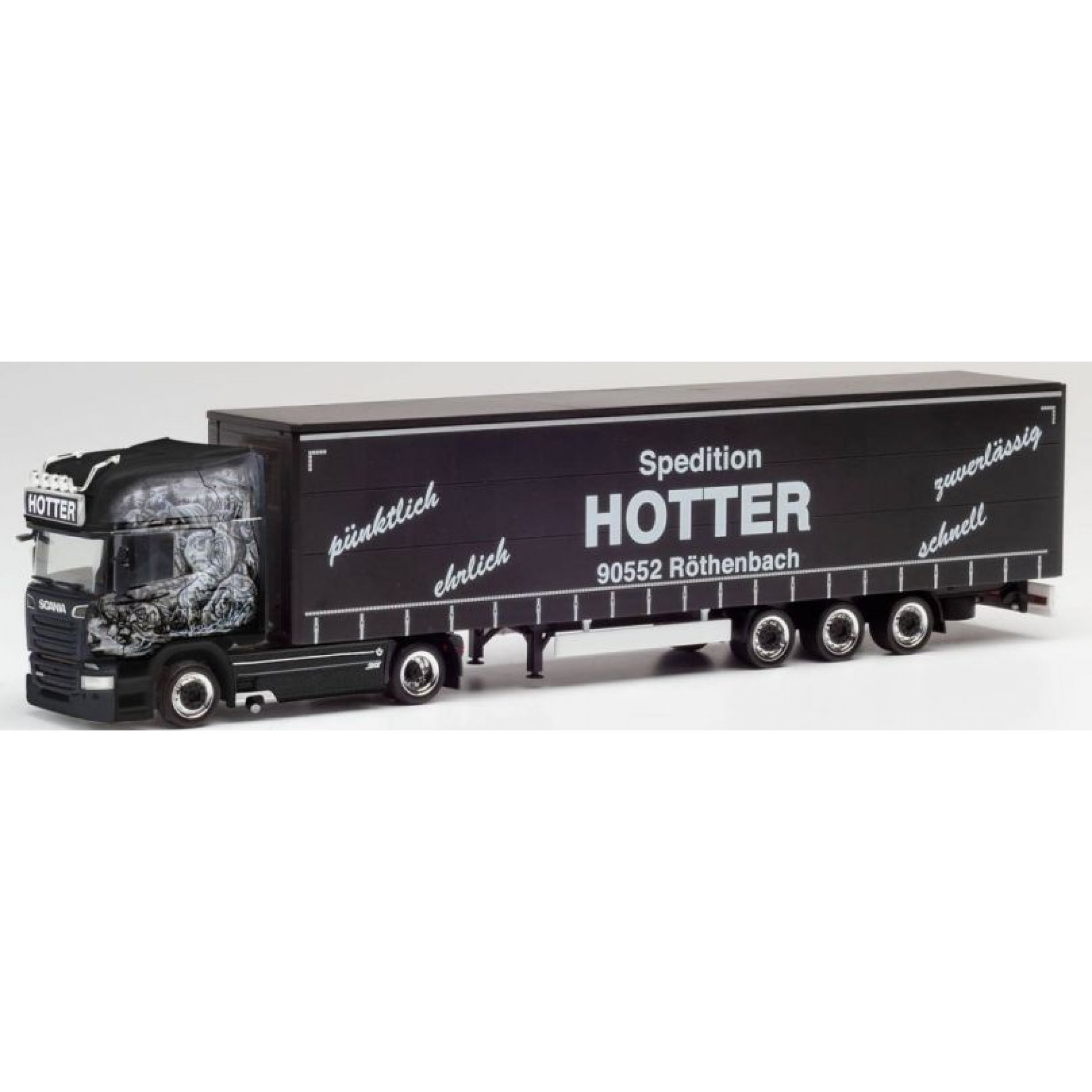 Scania R 13 TL Lowliner-Gardinenplanen-Sattelzug, Spedition Hotter - pünktlich ehrlich zuverlässig schnell, Röthenbach - Bayern