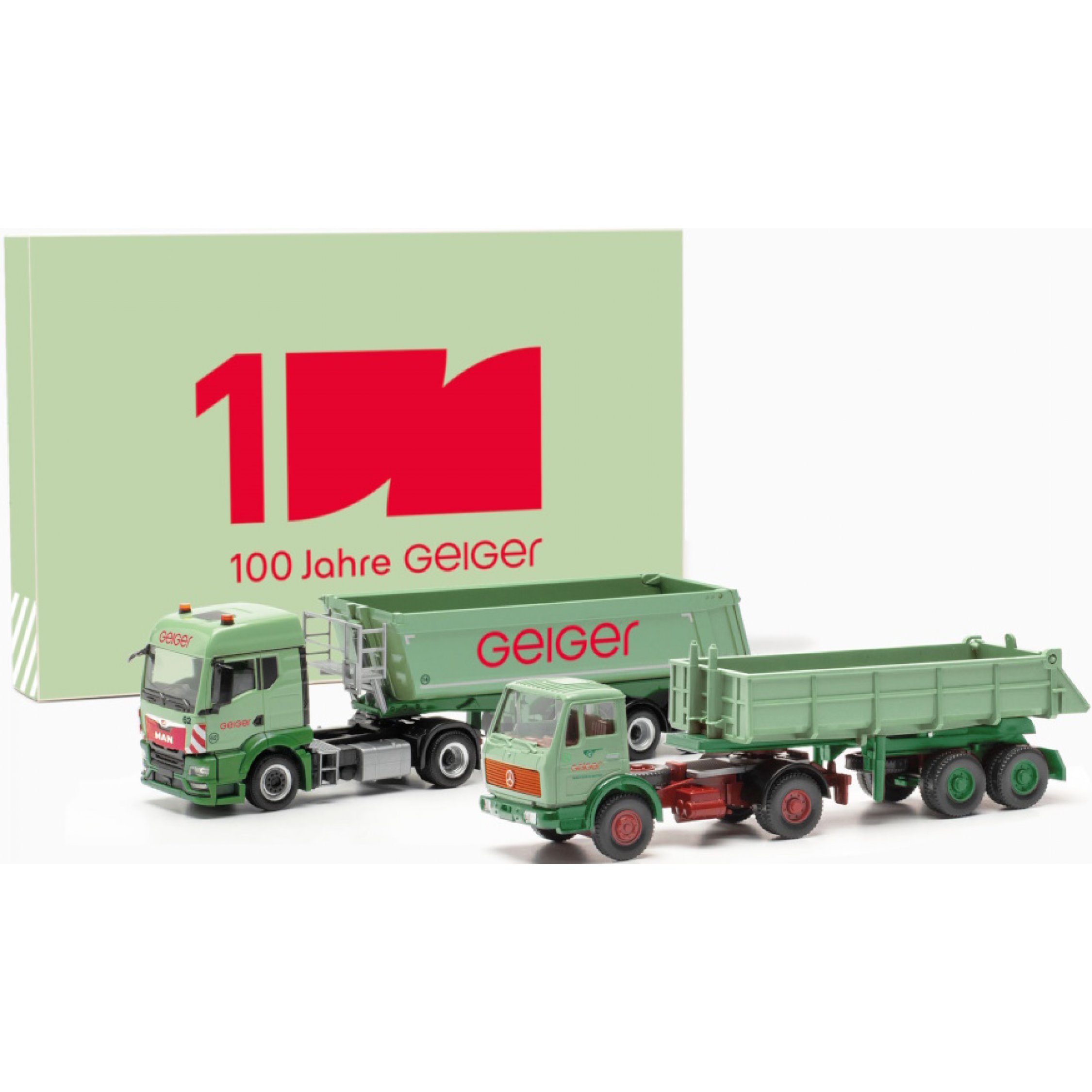 Set 100 Jahre Geiger: MAN TGS TM Rundmuldenkipp-Sattelzug (Schmitz) + Mercedes-Benz Baukipper Sattelzug (Wiking-Modell), Oberstdorf - Bayern