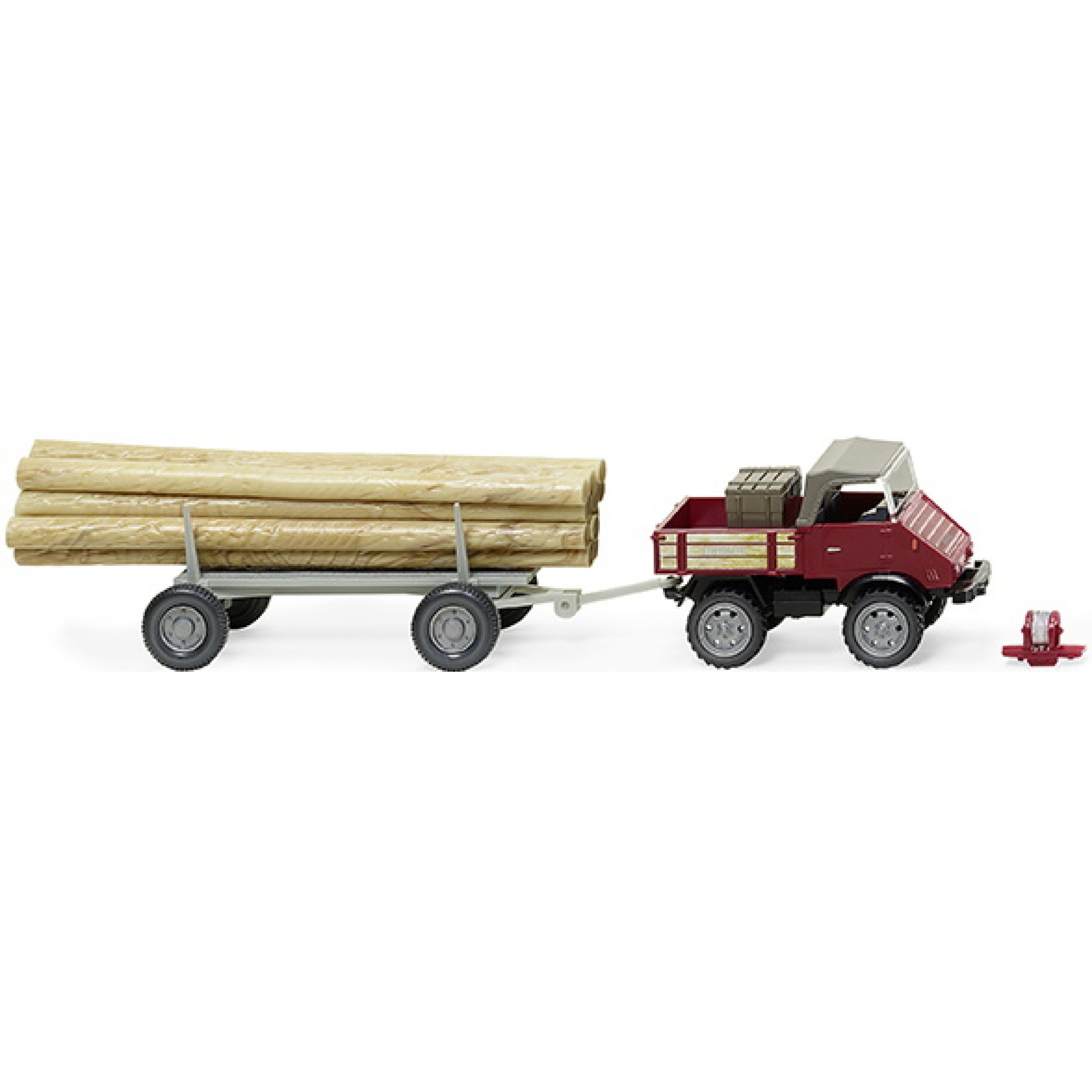 4. Unimog U 411 mit Langholzanhänger, Forstwirtschaft, braunrot, Baujahr 1956-74