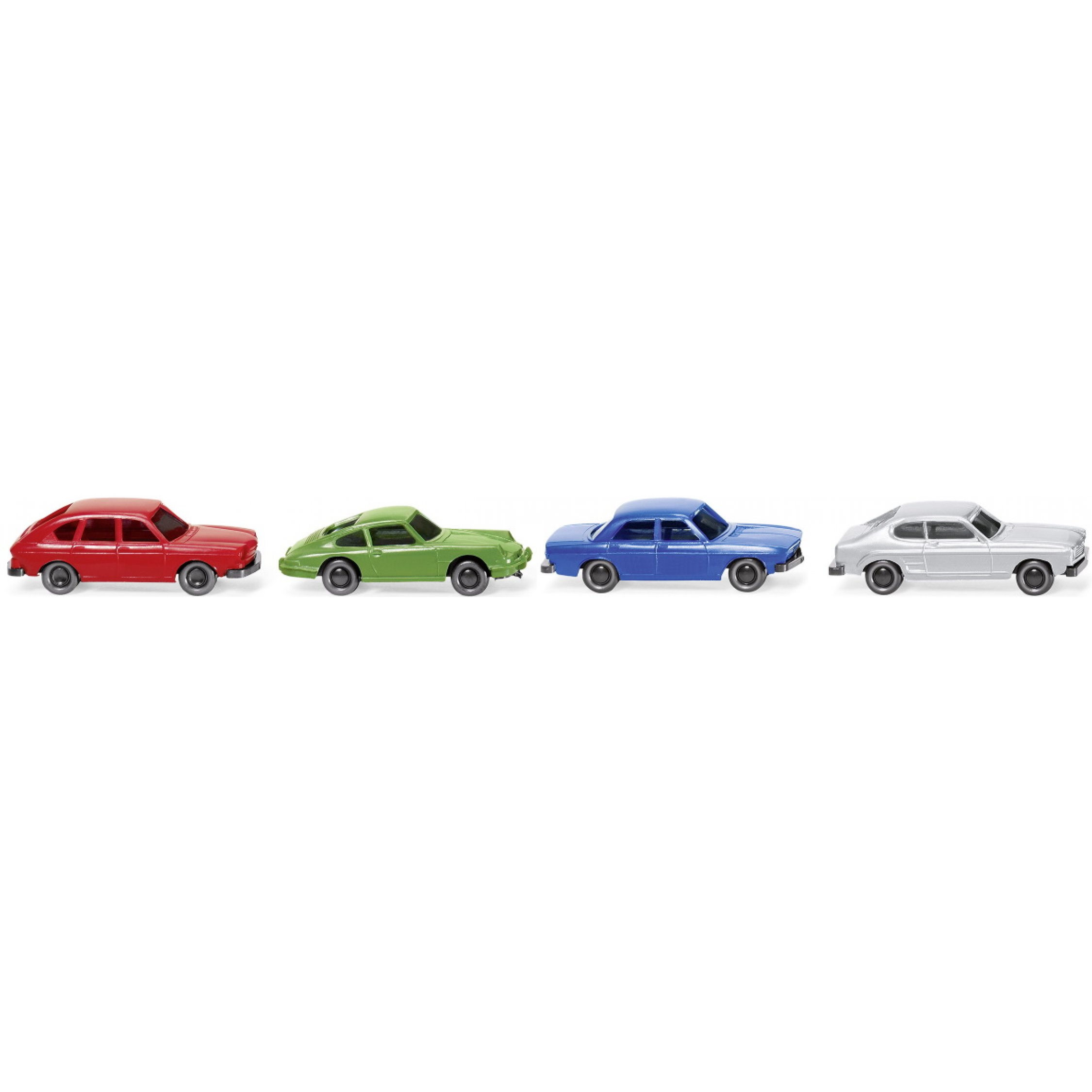 Vier klassische Personenwagen in Spur N