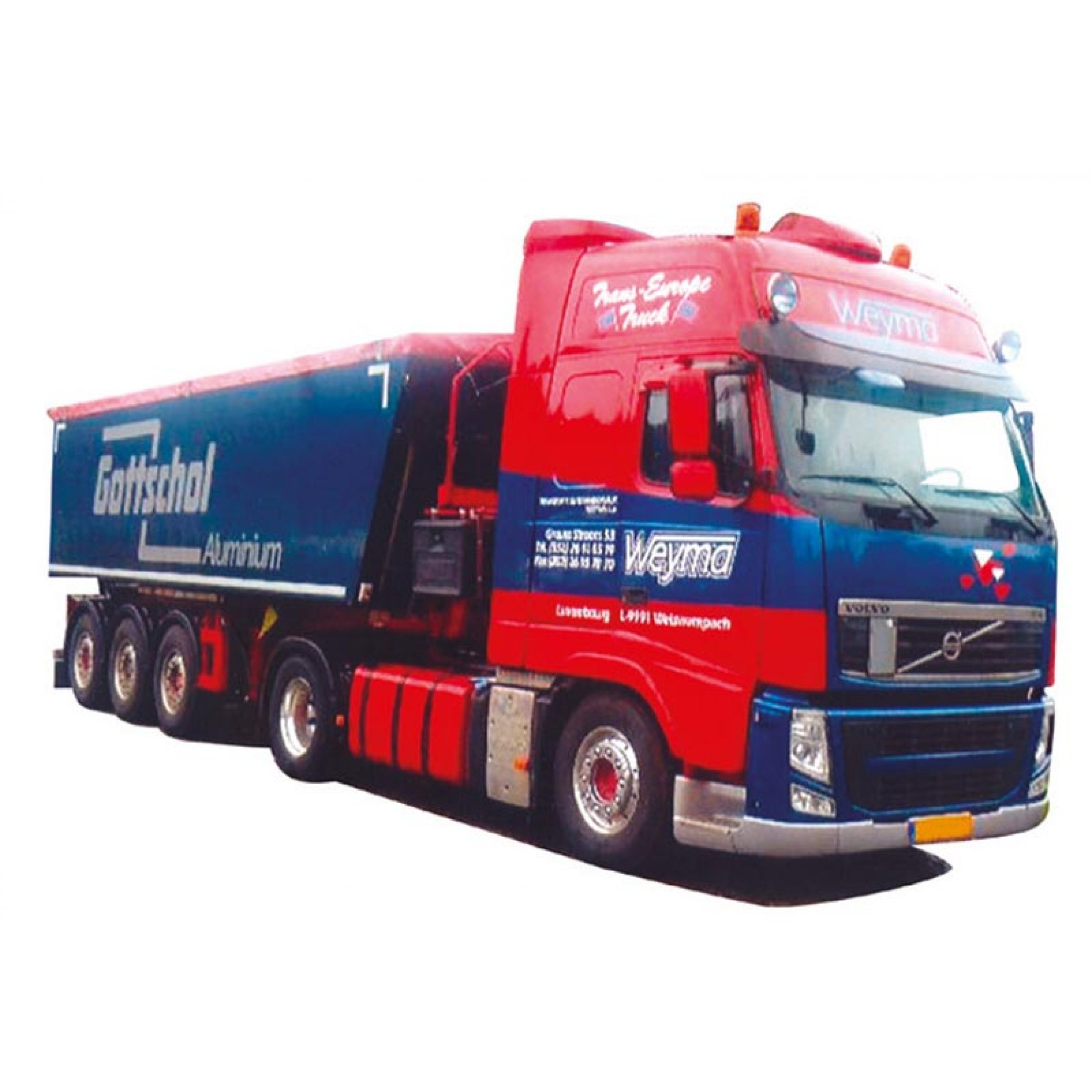 Volvo 08 XL/Aerop., Eckmulden-Kippsattelzug, Weyma / Gottscholl