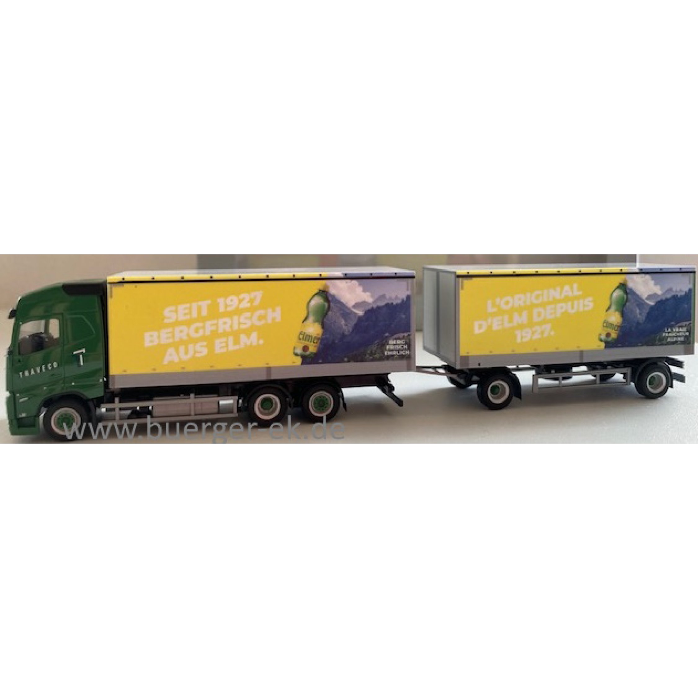 Volvo FH GL Planen-Hängerzug, Traveco / Elmer Citro, Seit 1927 Bergfrisch aus Elm. - Schweiz