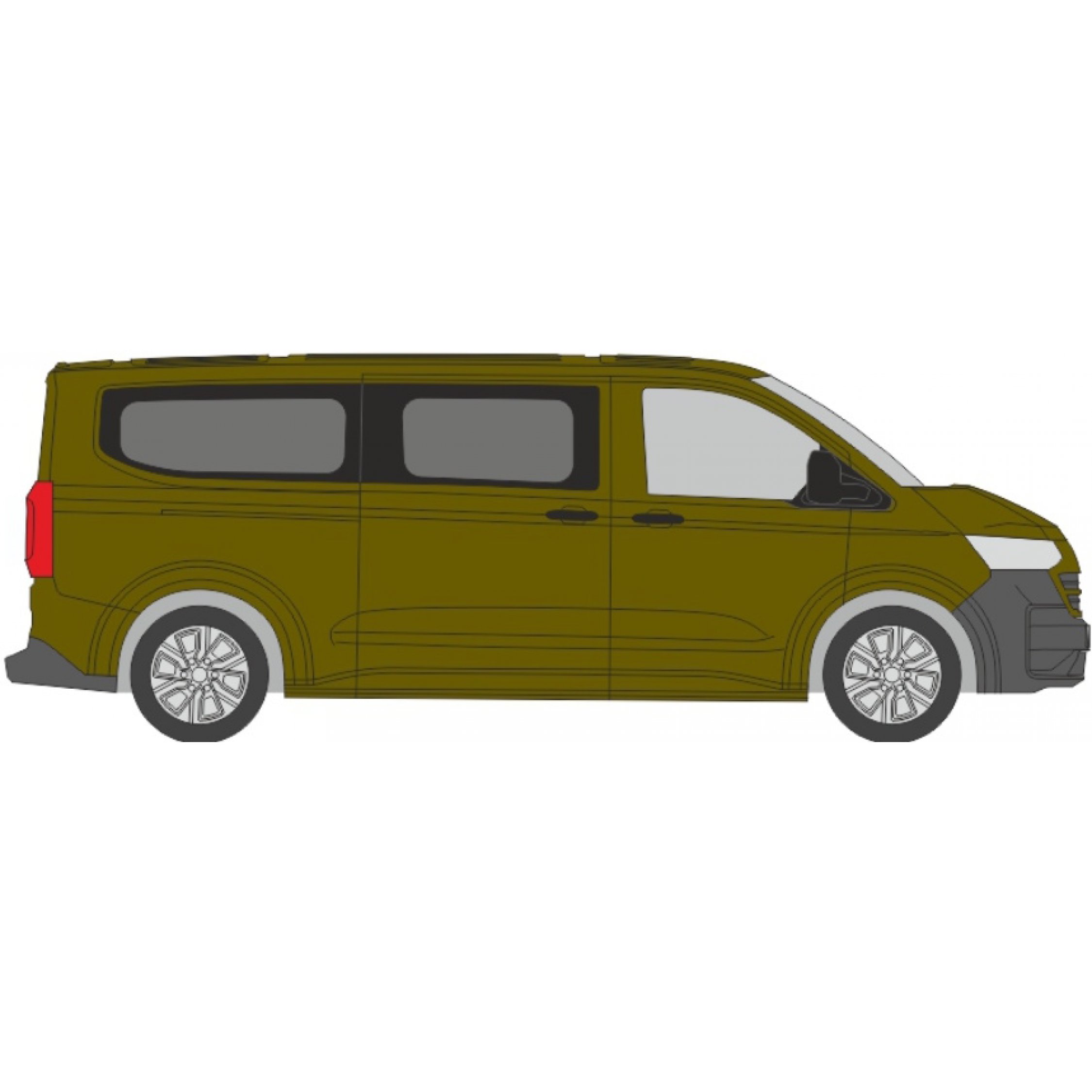 4. VW T7 LR e-Transporter Bus, warm green metallic