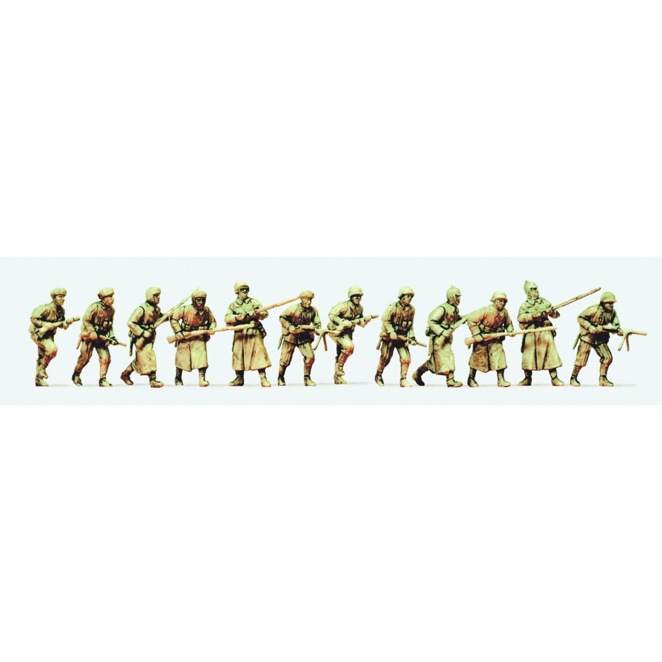 Angreifende Infanterie. Winteruniform. UDSSR 1941-1945, 12 unbemalte Figuren, Bausatz