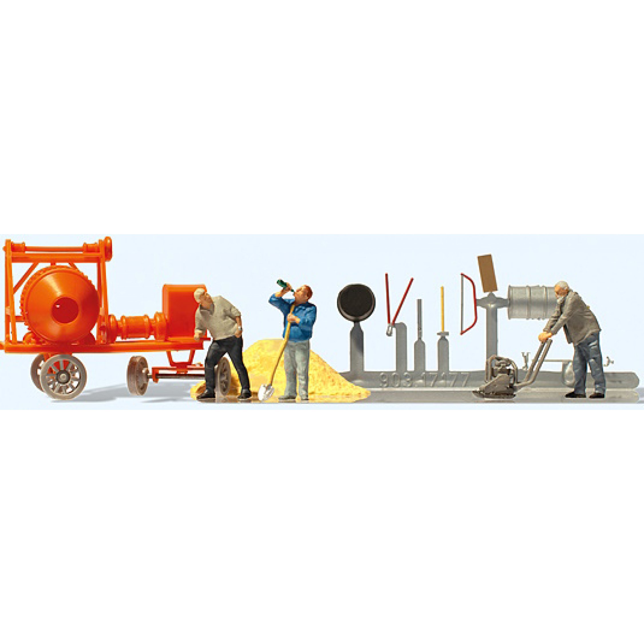 4. Bauarbeiter mit Baumaschinen und Zubehör