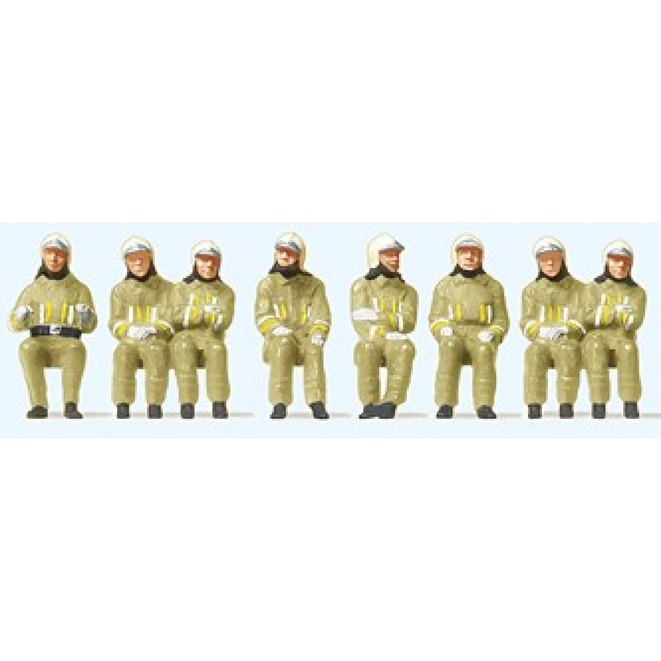 4. Feuerwehrmänner in moderner Einsatzkleindung, sitzende Fahrer und Mannschaften, Uniformfarbe beige