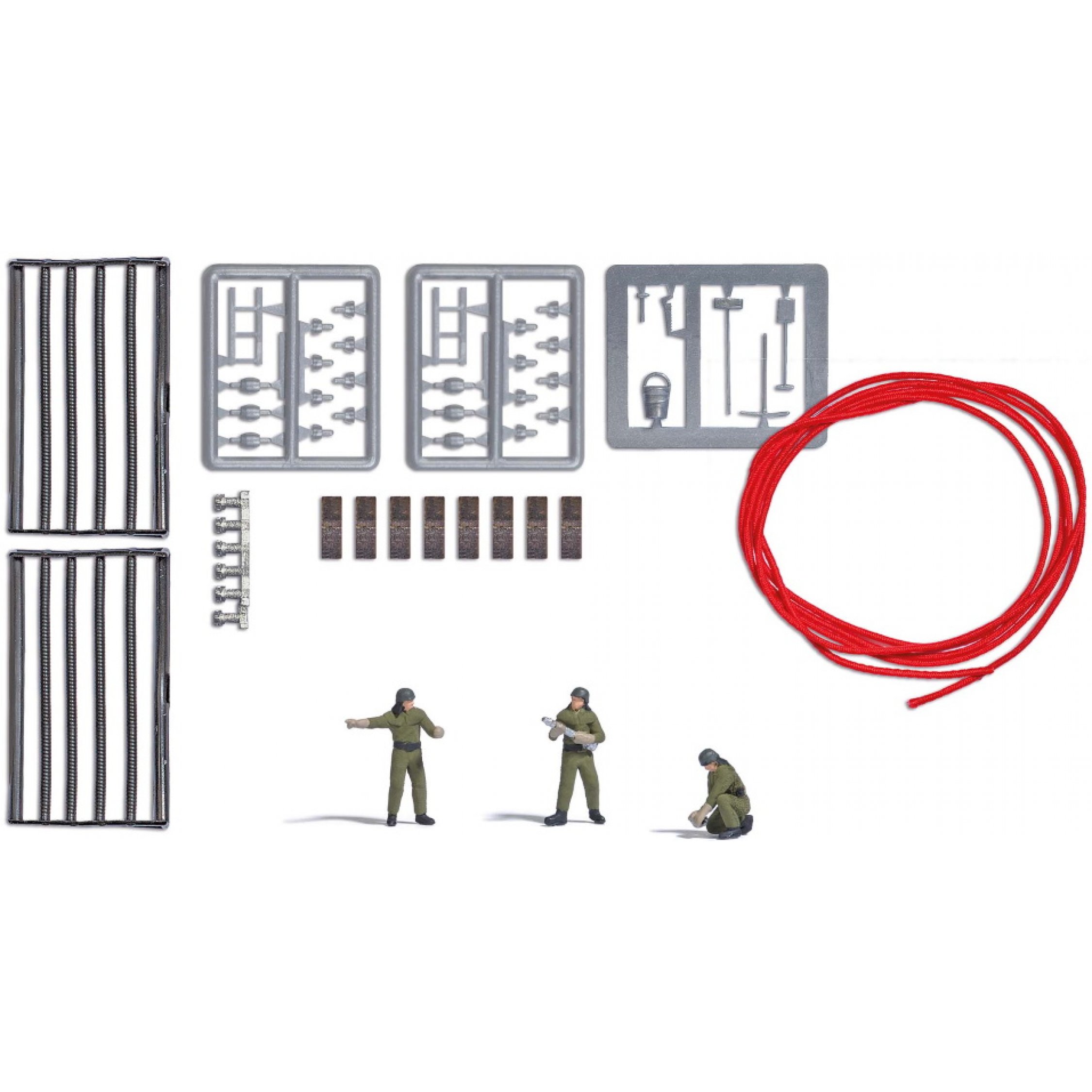 4. Feuerwehrmannschaft - 3 Feuerwehrmänner in DDR Feuerwehruniformen, mit Löschschlauch (Länge 50 cm), Schlauchkopplungen und Werkzeug
