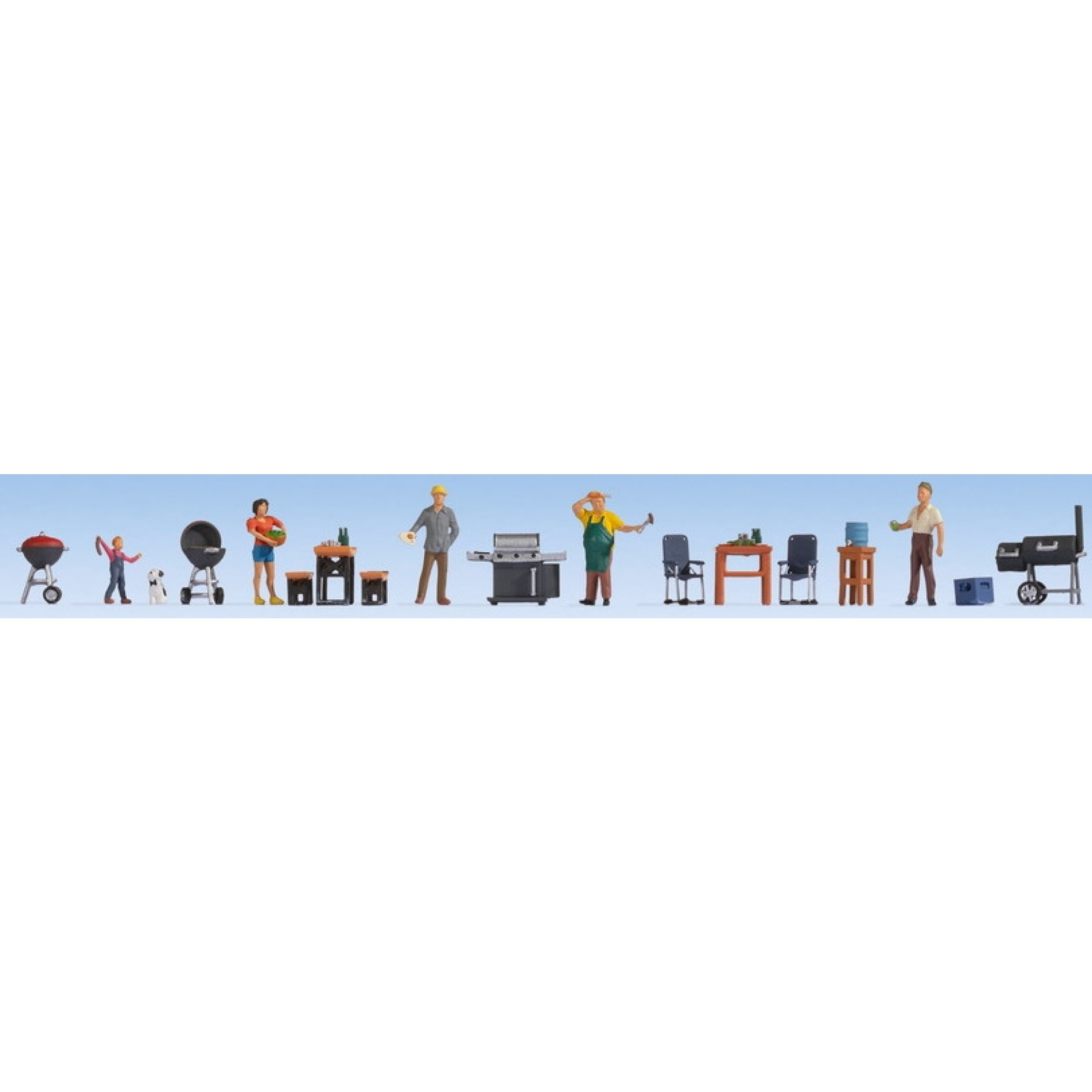 4. Figuren-Themenwelt - Grill-Pary, Inhalt: 5 Figuren, 1 Hund, 2 Kugel-Grills, 1 Gas-Grill, 1 Smoker, 1 Bierfass, 1 Biertisch, 2 Bierbänke, 1 Tisch,