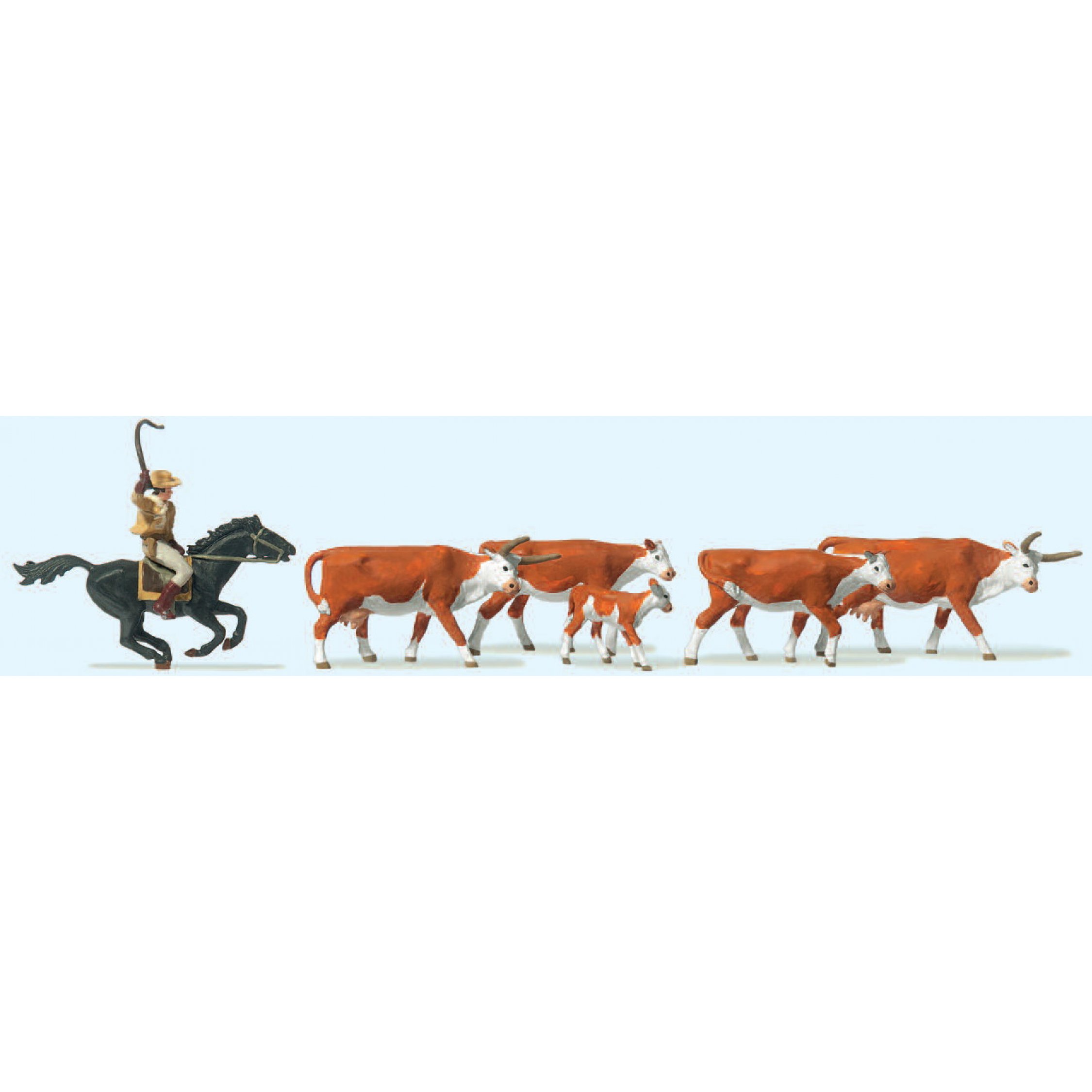 Langhornrinder, Cowboy zu Pferd