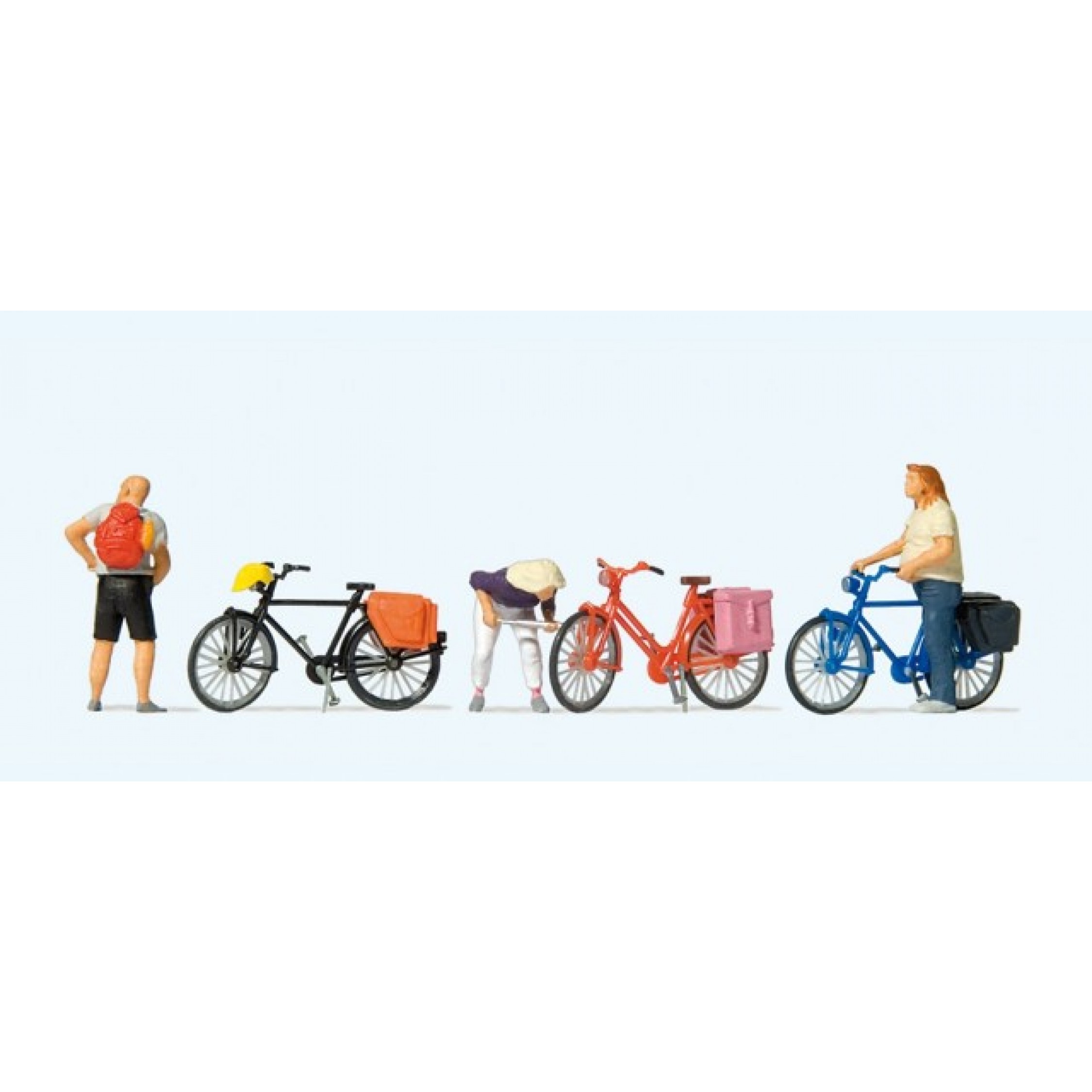4. Radfahrer stehend, Reifen aufpumpend und bei "kurzer Pause"