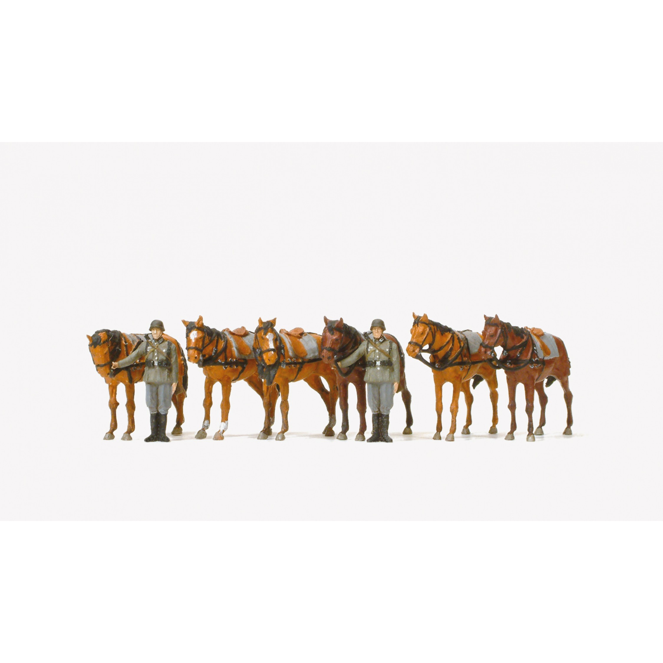 4. Stehende Zugpferde, Pferdehalter, Deutsches Reich 1939-45, 2 UNBEMALTE Figuren, 6 UNBEMALTE Pferde, Bausatz