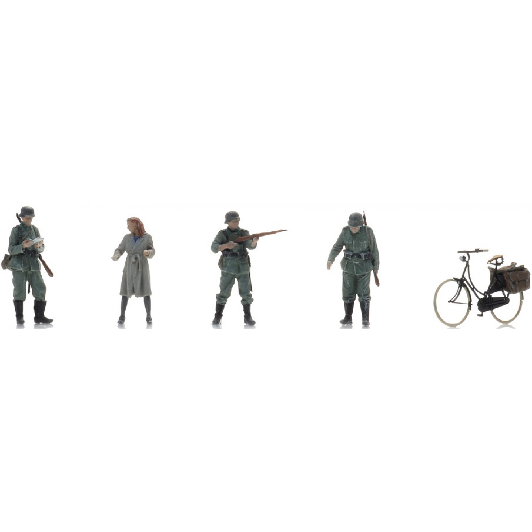 4. Wehrmacht, Checkpoint, mit Frau auf dem Fahrrad, 4 Figuren und Fahrrad, Spur N