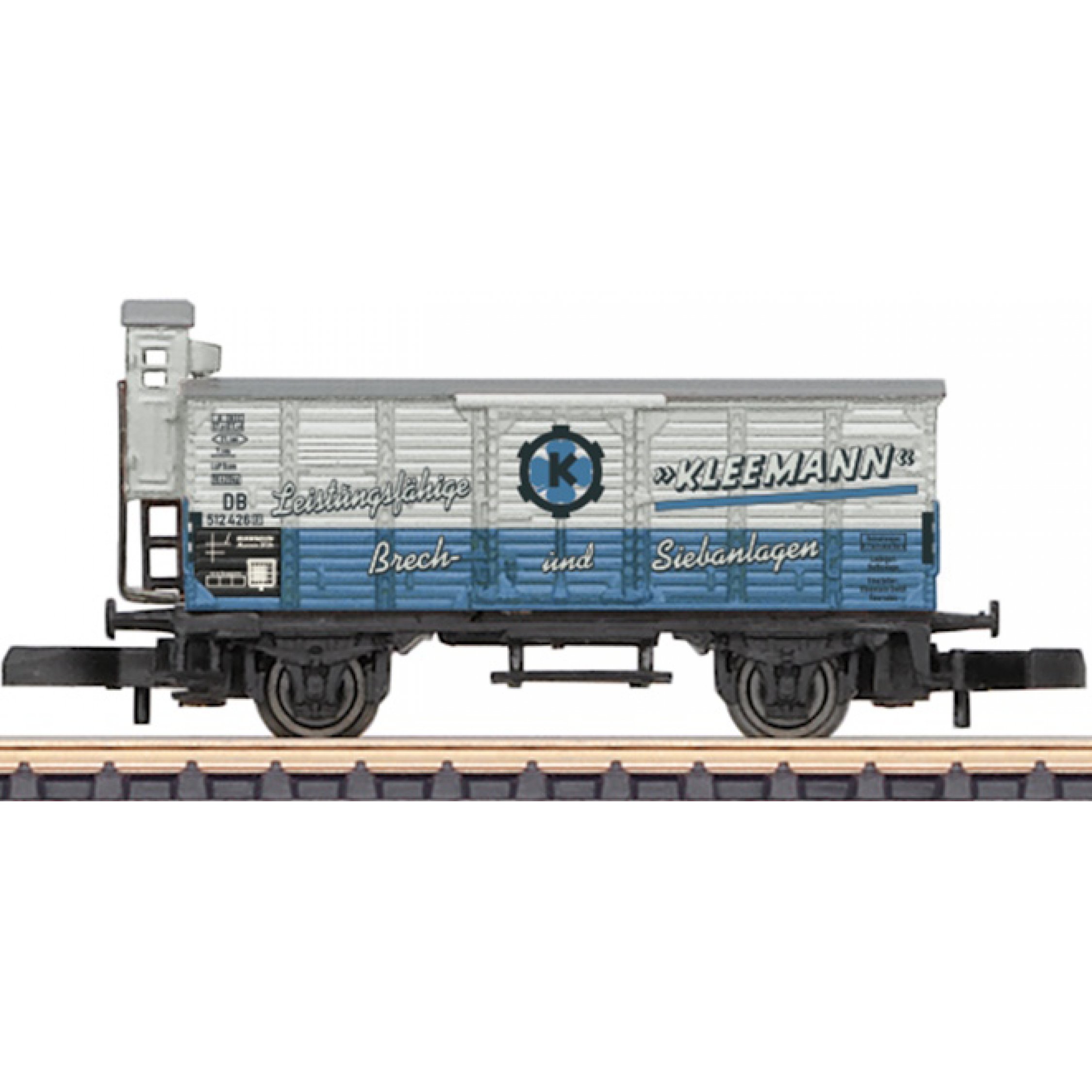Märklin Museumswagen 2026 Spur Z mini-club, Gedeckter Güterwagen Bauart G10, KLEEMANN Leistungsfähige Brech- und Siebanlagen, Göppingen, in Metalldose beiliegend Tempo Dreirad, rollfähig