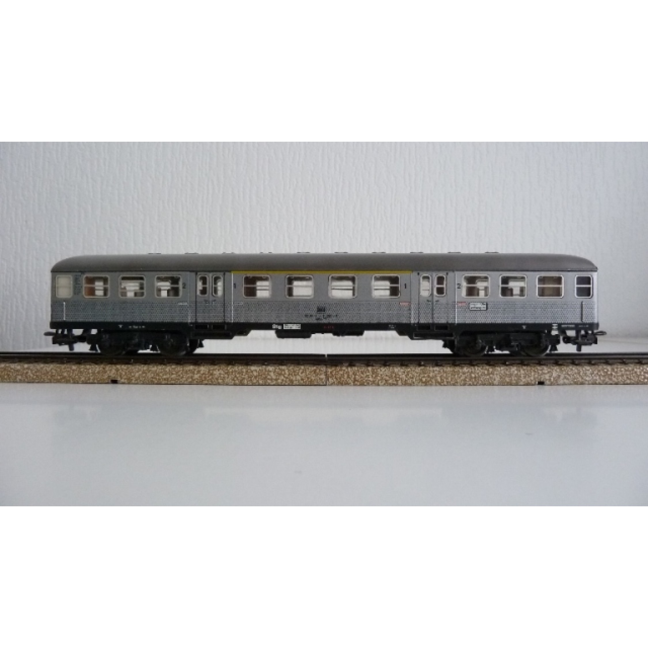 Nahverkehrswagen der DB, 1./2.Klasse, Wagenunterkante ozeanblau, UIC-Beschriftung, 4-achsig, silber, ohne Originalkarton, Zustand 2